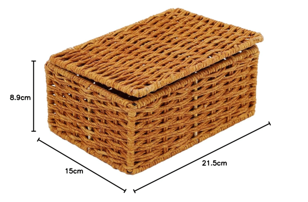 12×6 Inch Rattan Storage Box with Hinged Lid | Handmade Wicker Organizer Basket for Makeup, Desk Supplies & Home Décor