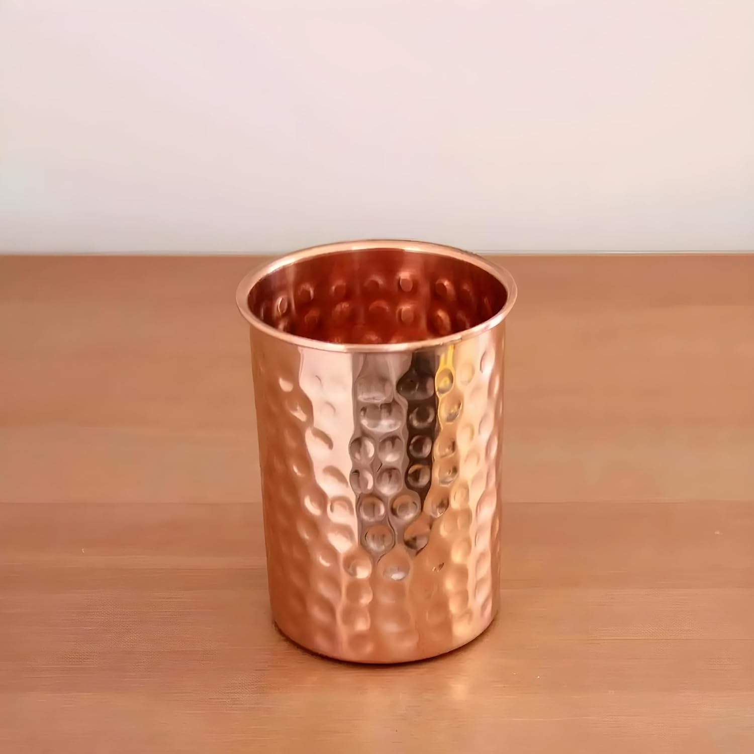 100% Pure Copper Hammered Tumbler 300ml | Ayurvedic Drinking Glass for Water | Traditional Handcrafted Copper Utensil – 1Pc
