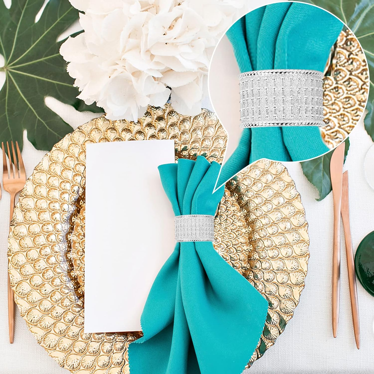 • Easy to use:This napkins rings can be easy dressed up or down to create the perfect each place setting and your table. perfect napkin holders and silverware wrapping bands.