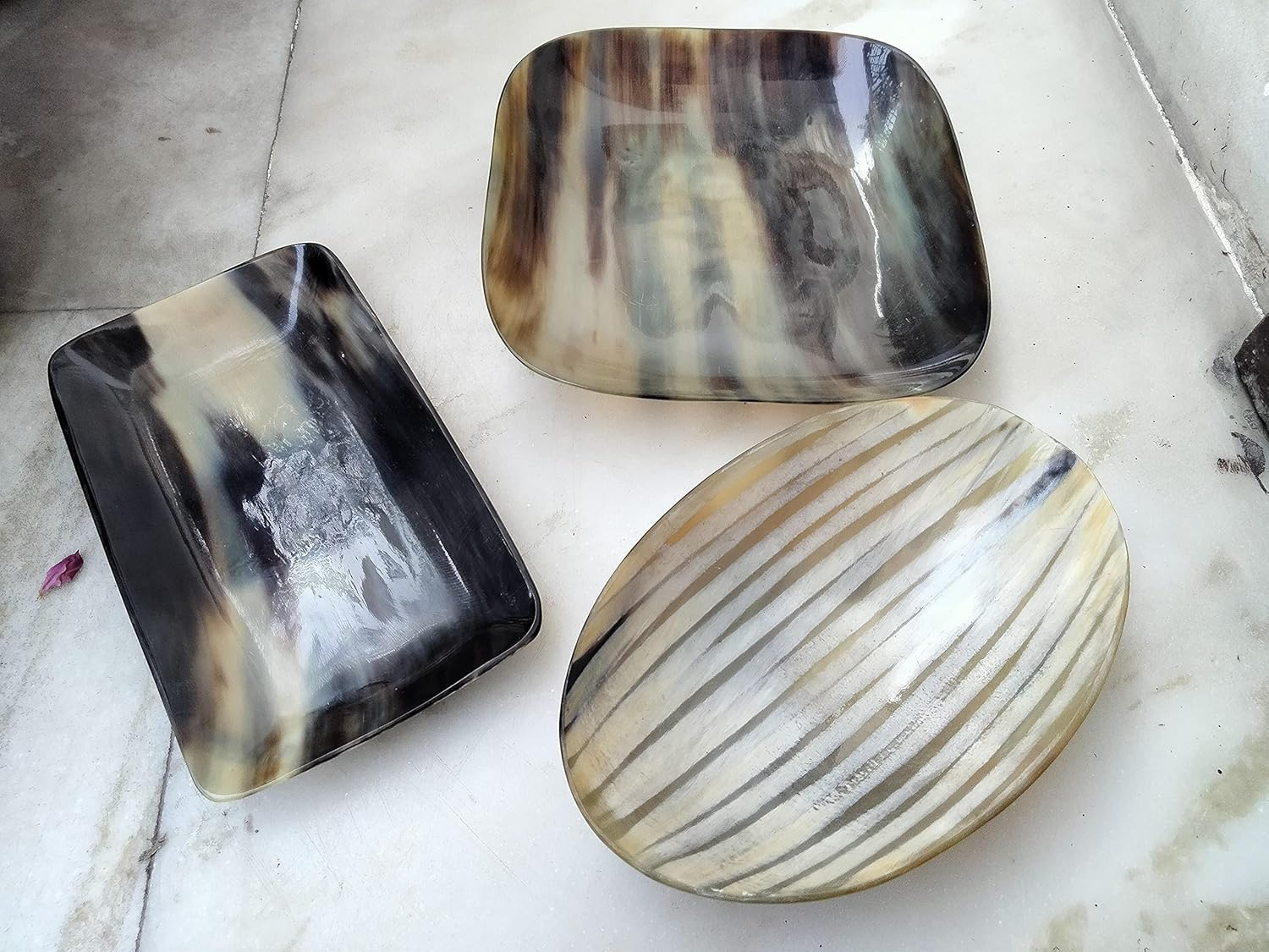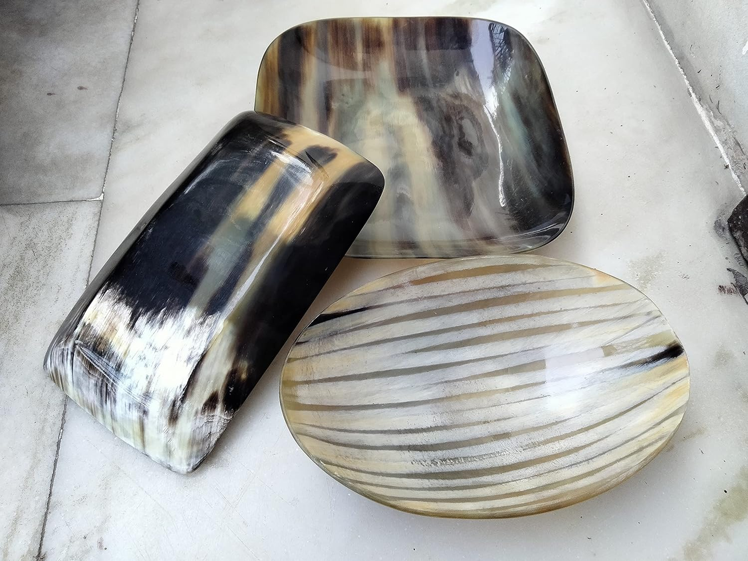 Ascent Gifts Set of 3 Horn Made Dry Fruit Tray Dishes Dining Table Decorative