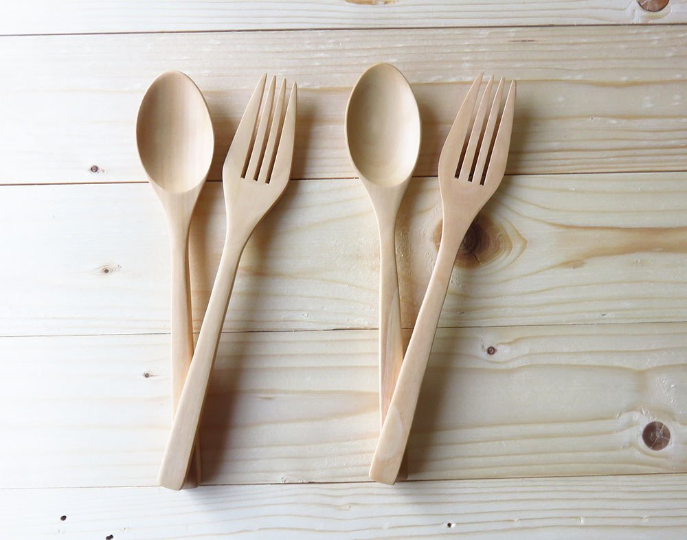 - Made from 100% Natural smooth birch-wood (s, Knives & Spoons), compostable and biodegradable material. BPA free, Plastic-free.