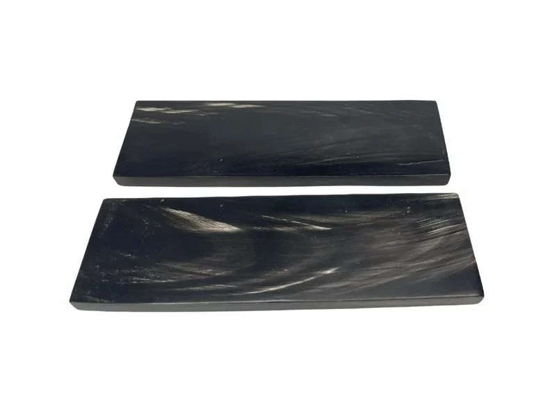 These Natural Horn Flat Plates are crafted from genuine buffalo horn, offering a durable and organic material ideal for various handicrafts and design projects. Each plate features a smooth surface with natural grain patterns and color variations ranging from deep black to smoky grey and brown tones. Perfect for artisans, knife makers, and crafters, these horn plates can be cut, carved, or polished to create handles, jewelry, buttons, and decorative items.