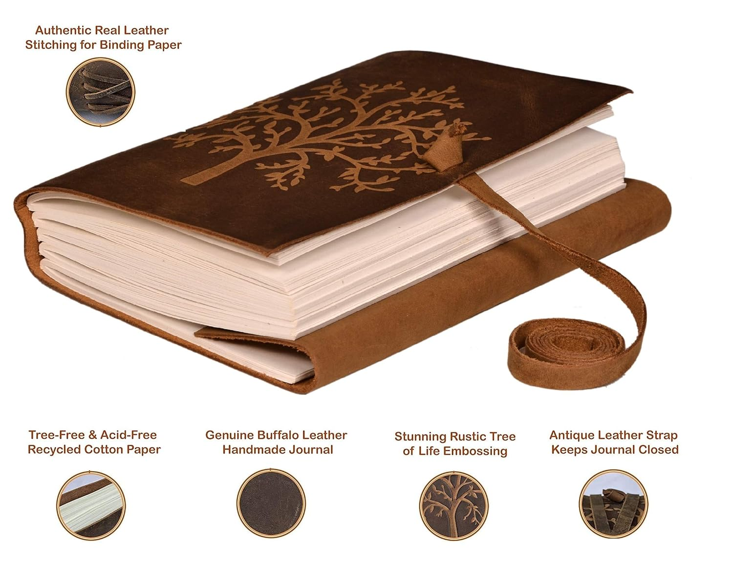 - Beautiful & Aesthetic: Handmade leather book journal – use it as scrapbook or sketch book to draw, stick travel photos to make collage, practice Calligraphy using fountain pen, paint your dream using a paint brush and do not worry as we use no-bleed through thick craft pages. Best hand-crafted gift for an Art lover. Carry in style and get compliments wherever you may go, Compliments Guaranteed