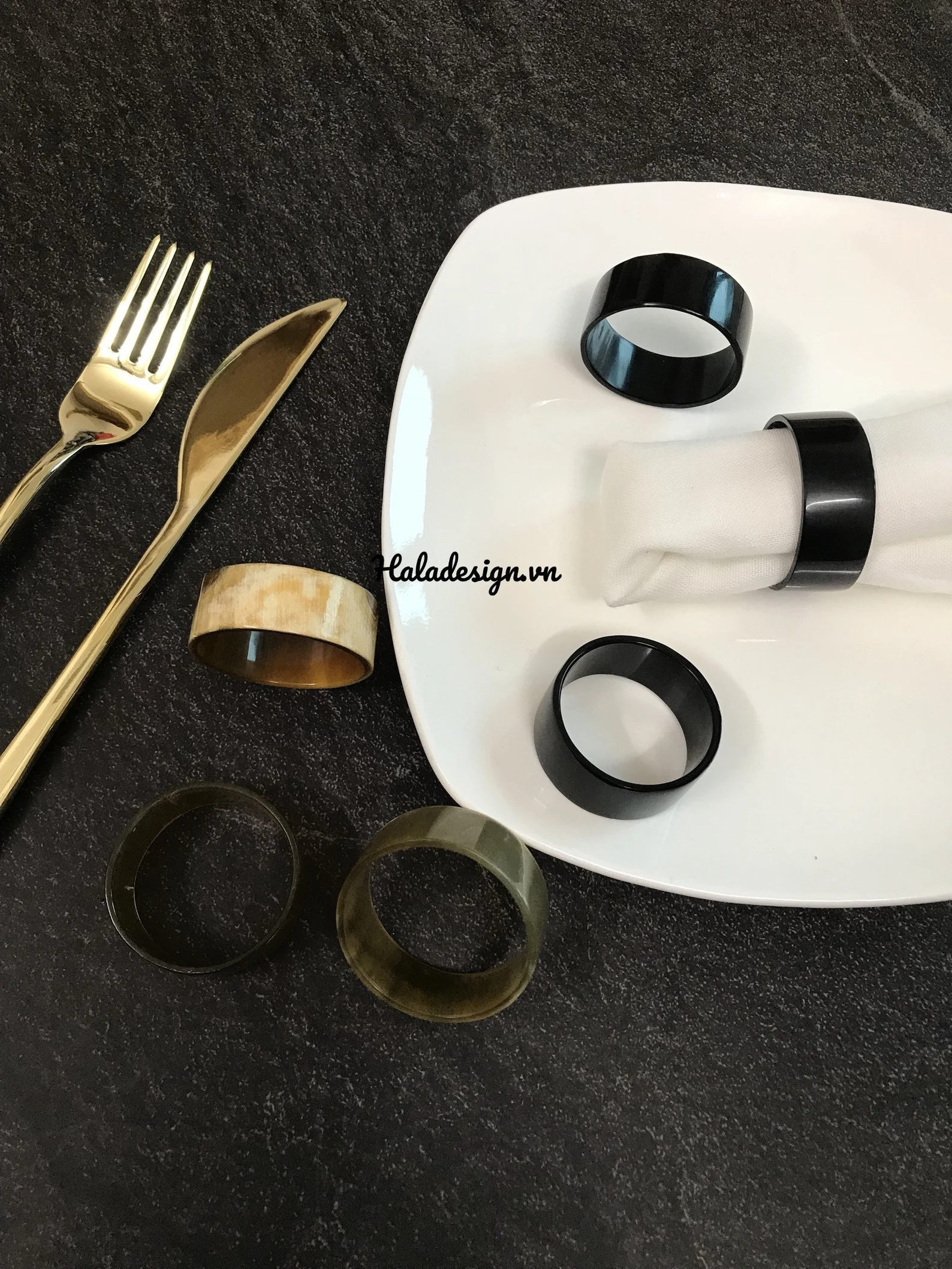 Generally speaking, horn products should only be cleaned with lukewarm water. Avoid cleaning buffalo horn and lacquer necklace with soap and hot water and be sure they are fully dried immediately after being wet. They are not dishwasher safe and should not be submerged in any type of fluid for more than a few seconds.After cleaning,use a drop of olive or coconut oil to hydrated the napkin ring, keep your item always shiny.