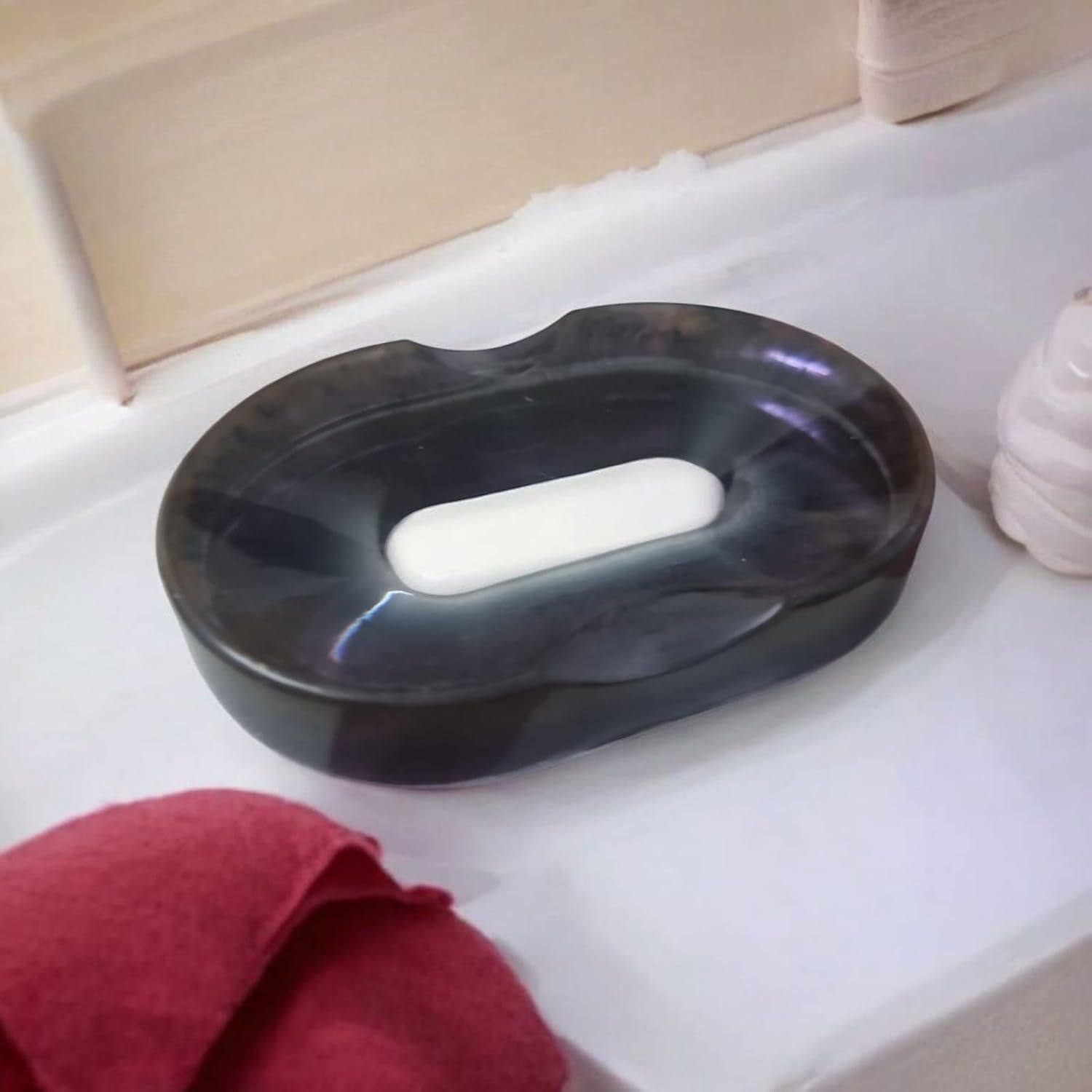 - ELEGANT DESIGN: This beautiful resin soap dish with a modern, wave-inspired shape adds a decorative touch to any bathroom counter or vanity