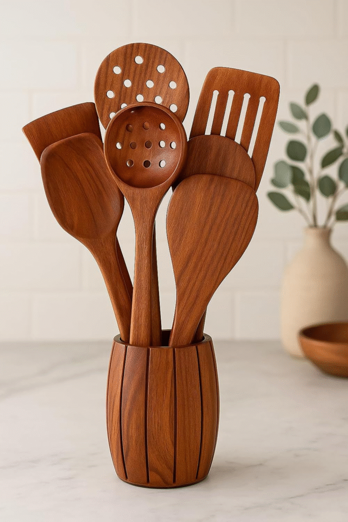 Decorlay Wooden Cooking Spoon Set, 7-Piece, Brown, 35 Cm
