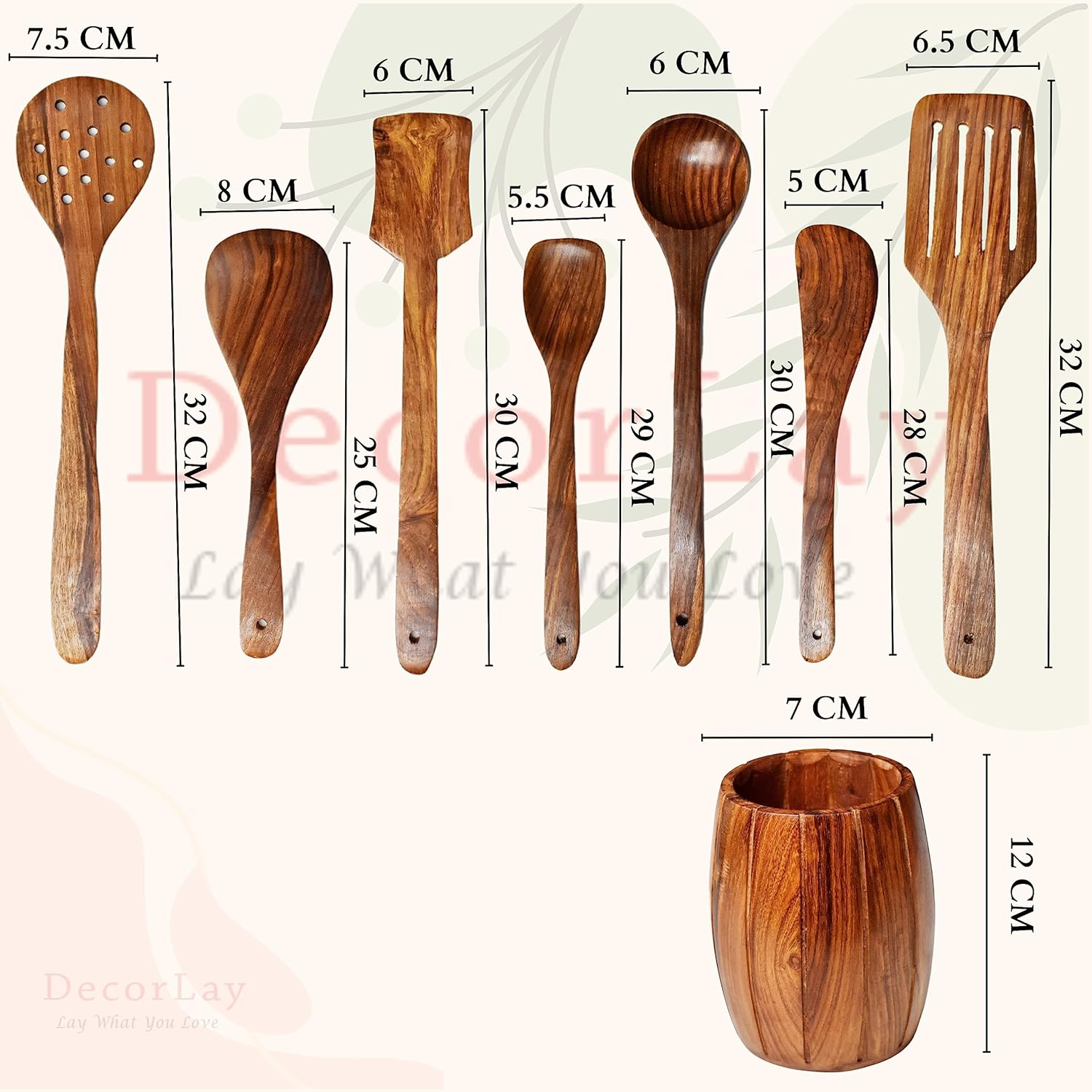 - [Natural Finish & Safe to Use] Non-Stick Soft edges ensure vessels are scratch-free these wooden spoon set for cooking are non-stick cooking essentials kits will be a great prep tool.