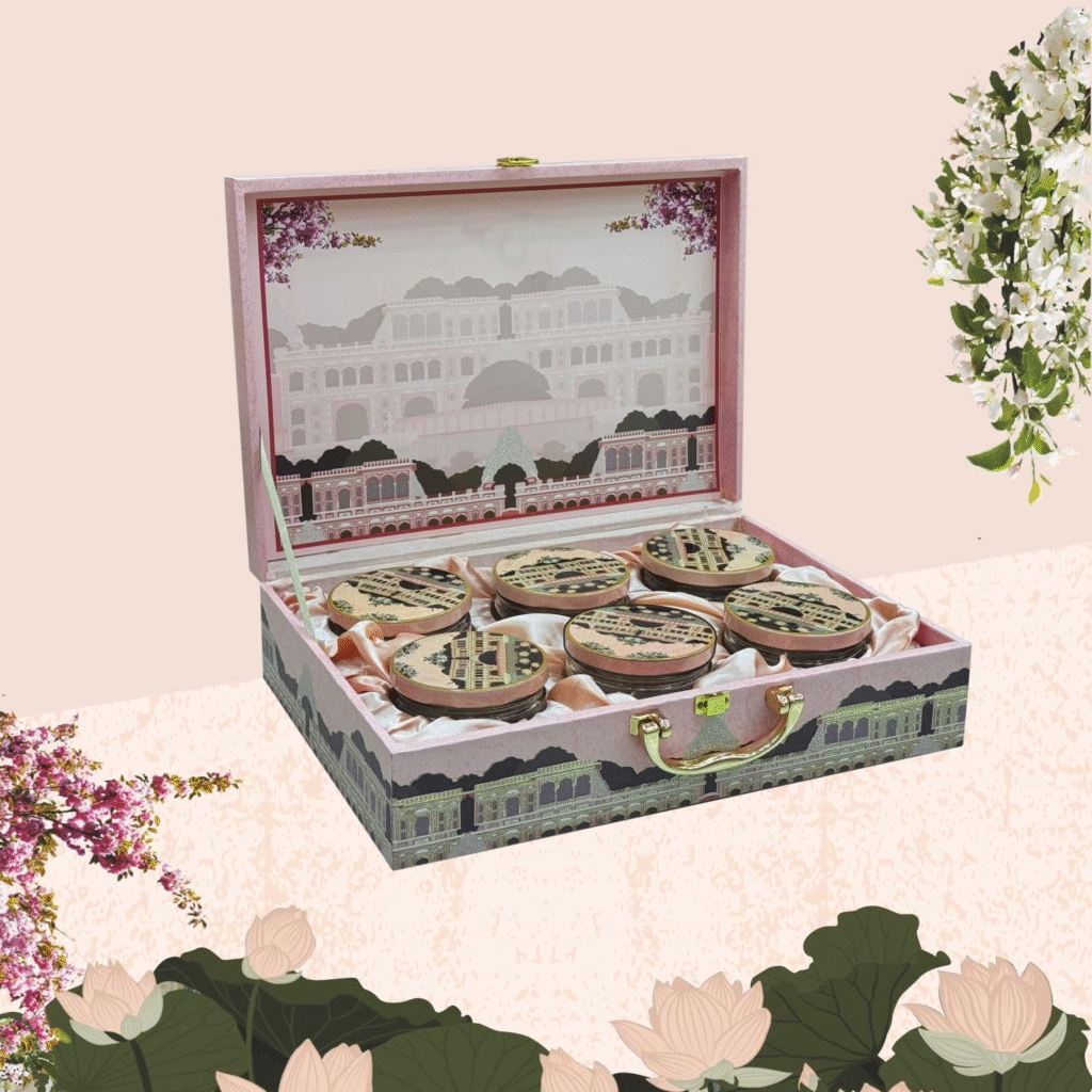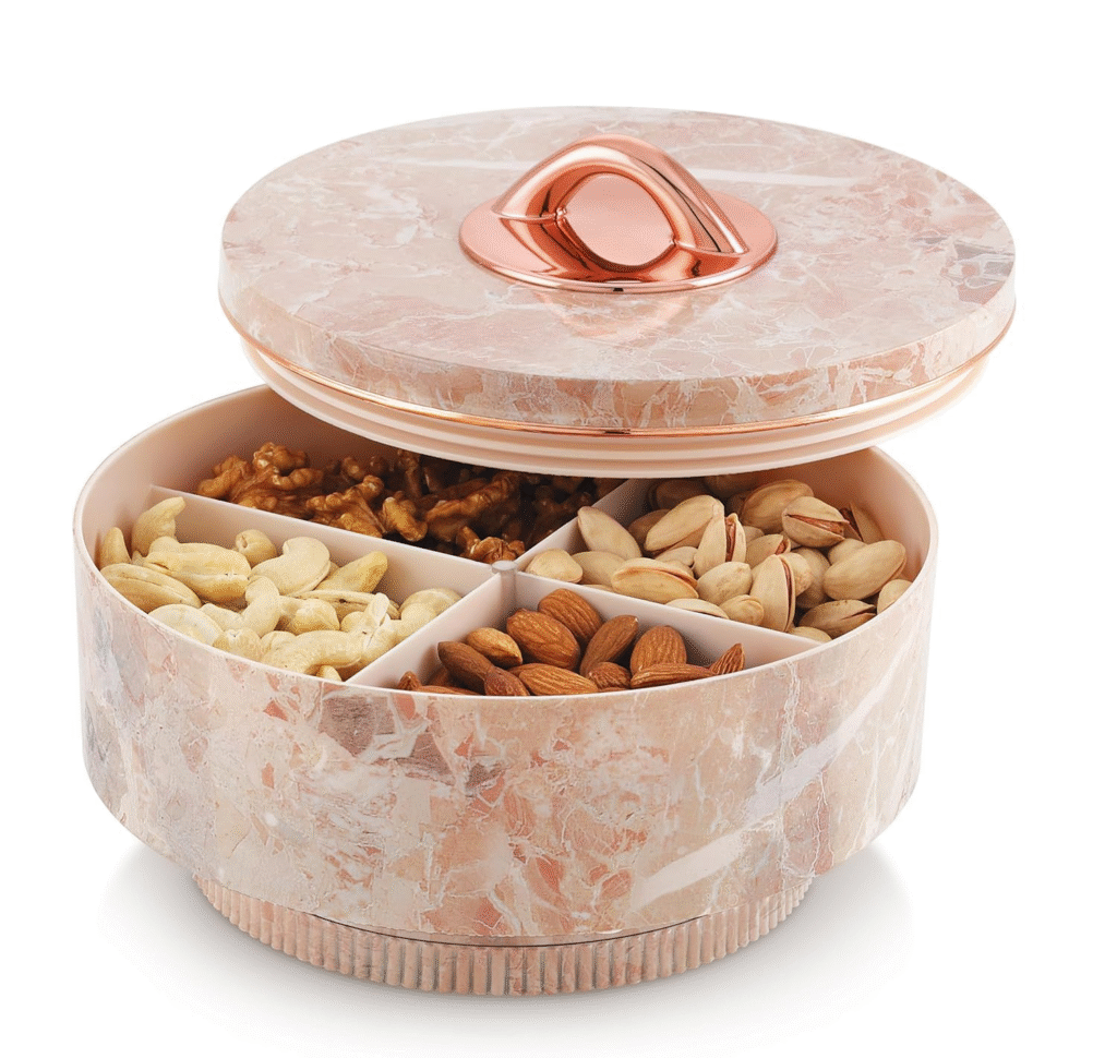 Dry Fruit Wood Container with Lid & Serving Tray,Wooden Serving Tray with Wood Jars for Serving Sweets, Cookies Other Snacks (3 Jars, White Hand work,) (SHEESHAM)