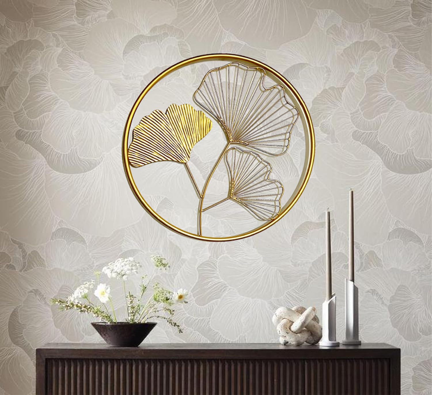 DSH CRAFTING YOUR CURIOSITY Metal Round Shaped Beautiful Leaf Wall Decor Wall Arts Perfect For Living Room (Design – 3 (3 Leaf))(Gold)