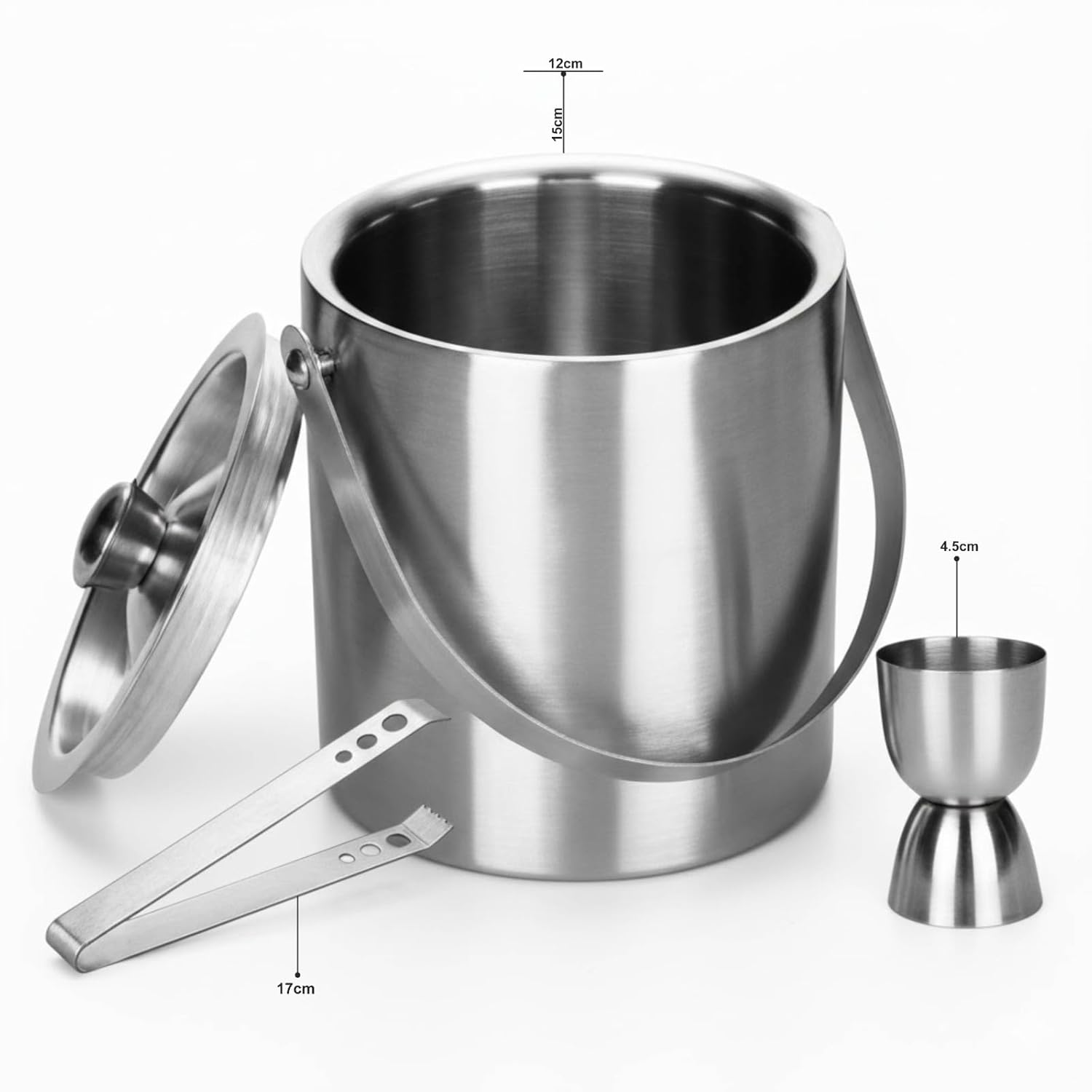 Keep your drinks perfectly chilled with this stylish Ice Bucket, designed for both elegance and performance. Crafted from high-quality stainless steel, it features a double-wall insulated body that maintains ice for hours without condensation or leaks. Its sleek, polished finish adds a touch of sophistication to any bar setup, while the sturdy handle ensures easy portability. Ideal for serving chilled wine, cocktails, or beverages at home, parties, or restaurants.