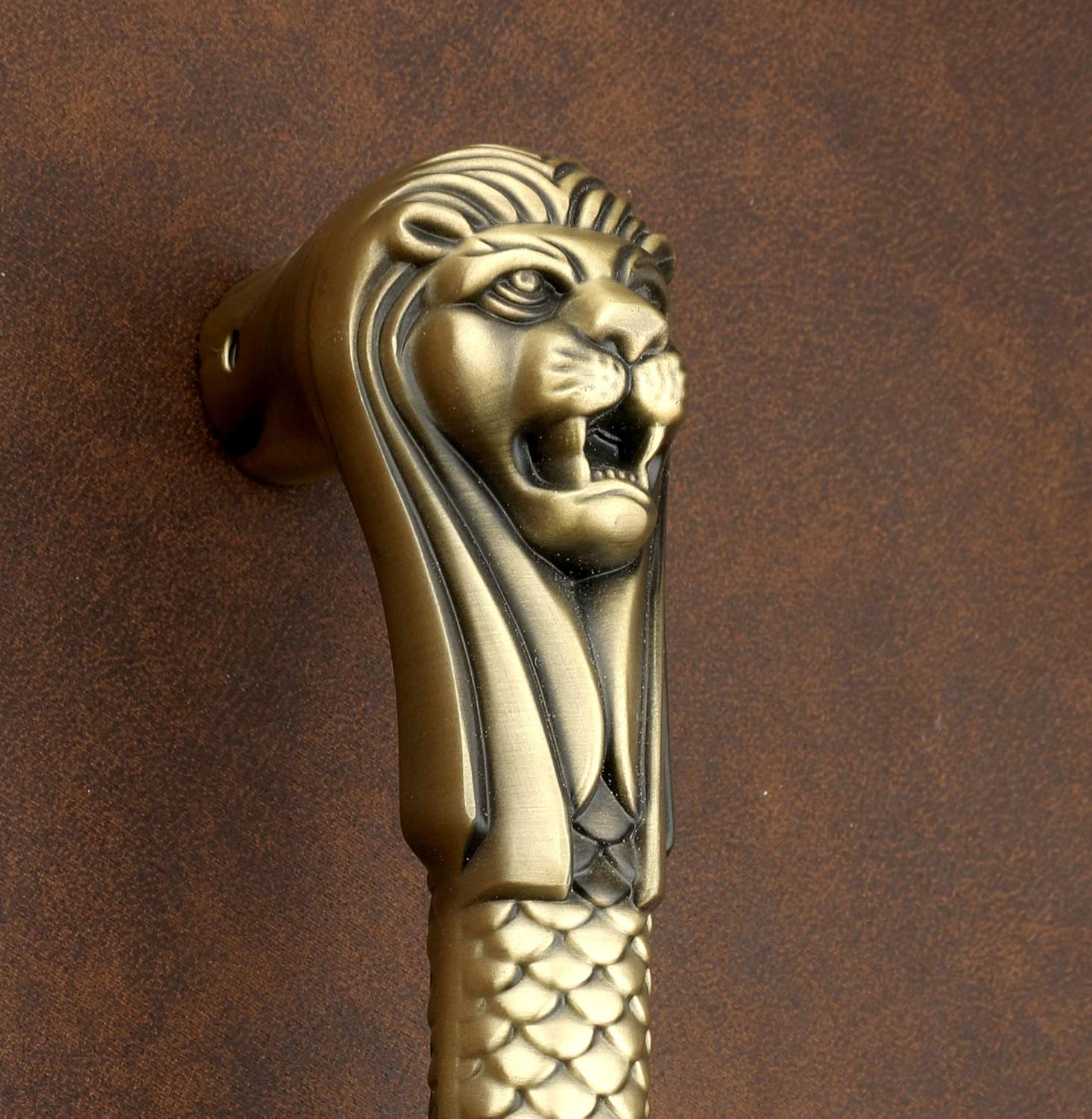 GLOXY ENTERPRISE Aluminum 11.5 Inch Lion Shape Door Handle for Main Door Wooden Door Handle/Pull-Push Door Handle/Main Door Handle for Home and Office Furniture (Antique Finish, Pack of 1)