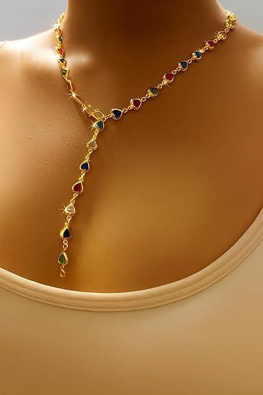 - Trendy & Eye-Catching Design: Heart-shaped multicolor stones on a gold-plated chain make this necklace a fun and fashionable choice for all ages.