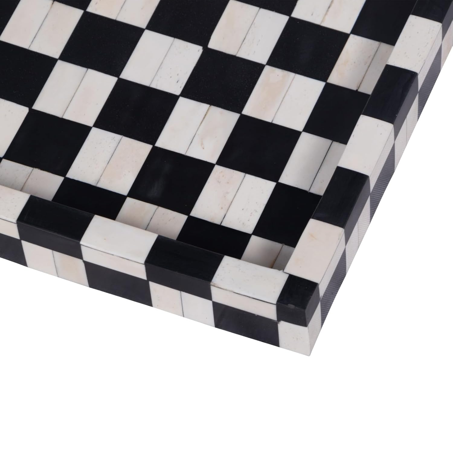 Handcrafted Bone Inlay Serving Tray � Checkered Black & White Decorative Tray for Coffee Table, Kitchen & Home D�cor (Rectangle)