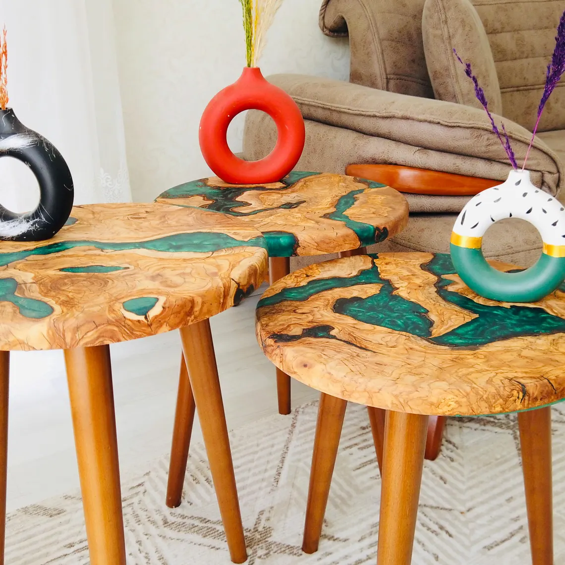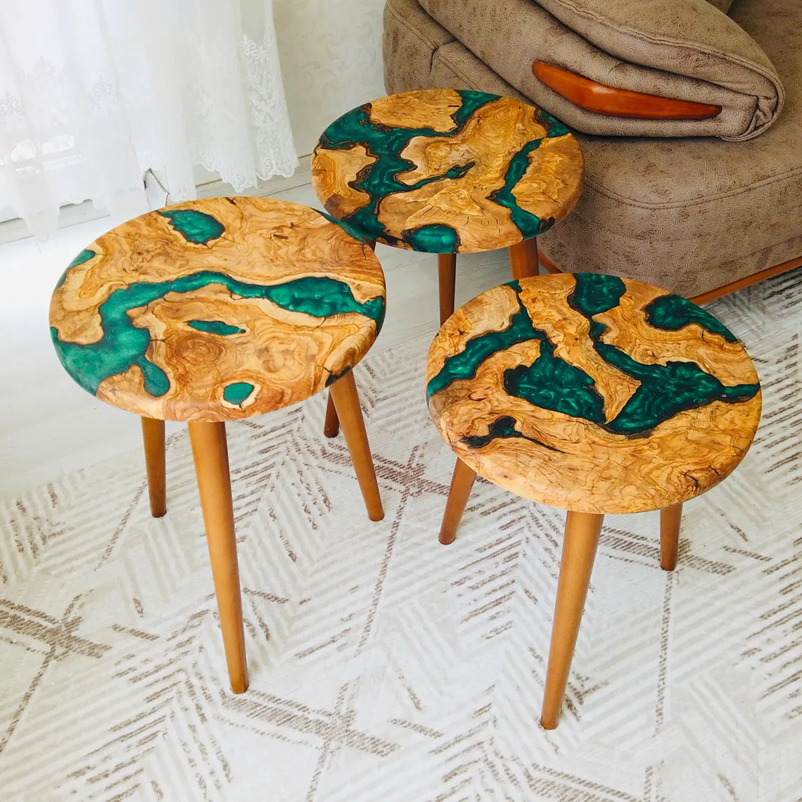 Handmade Olive Wood Epoxy Coffee Table: Live Edge Side Table