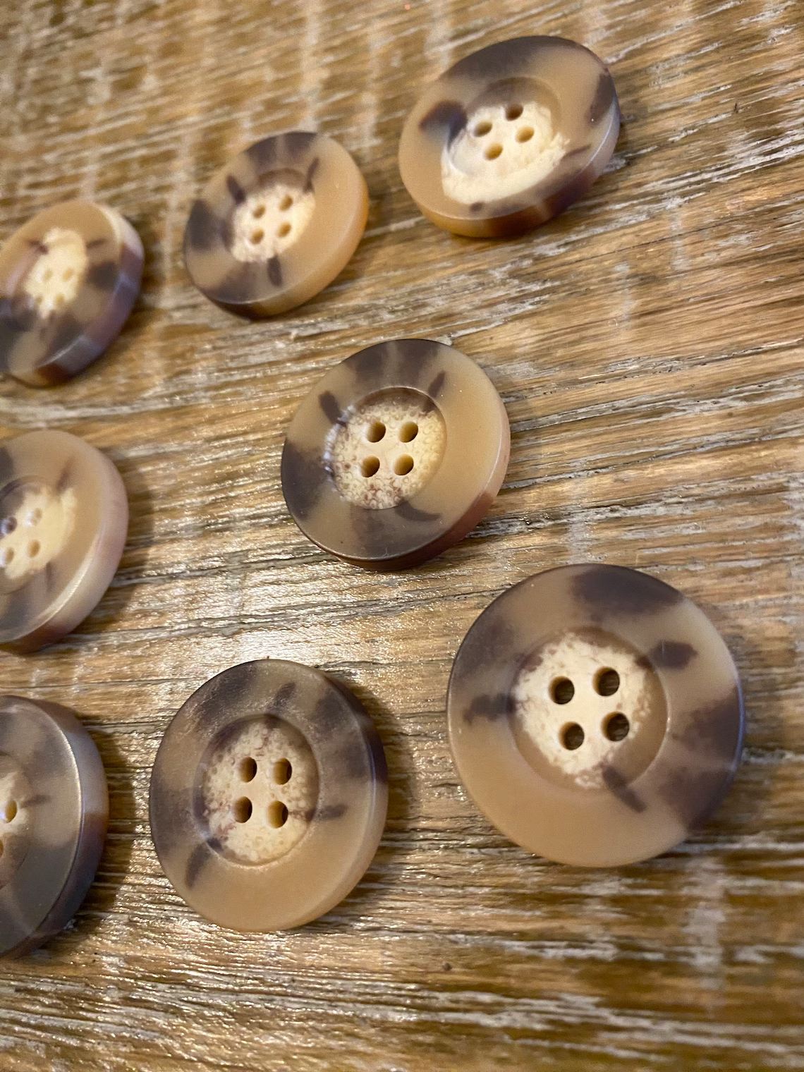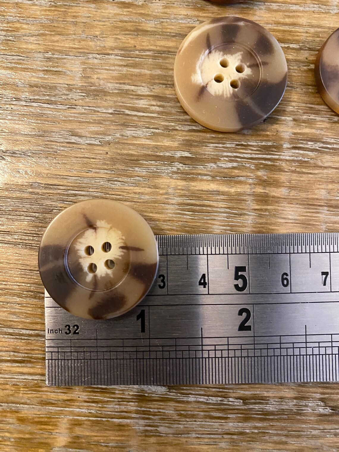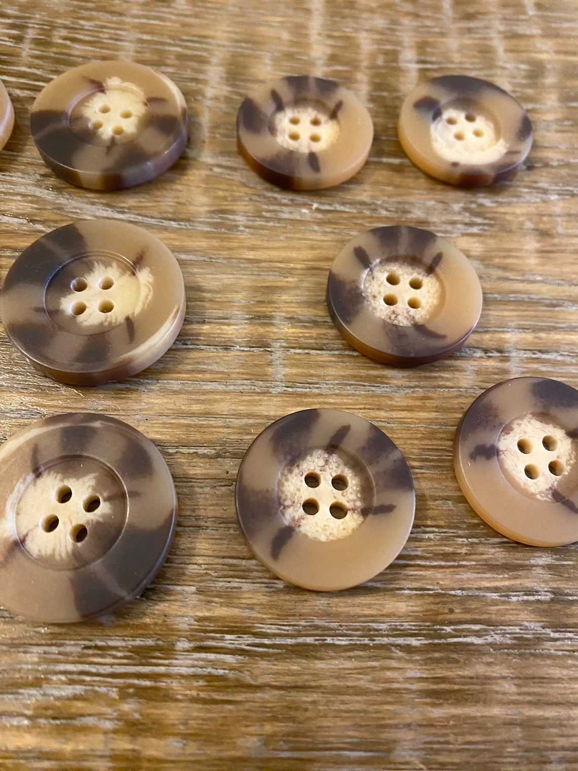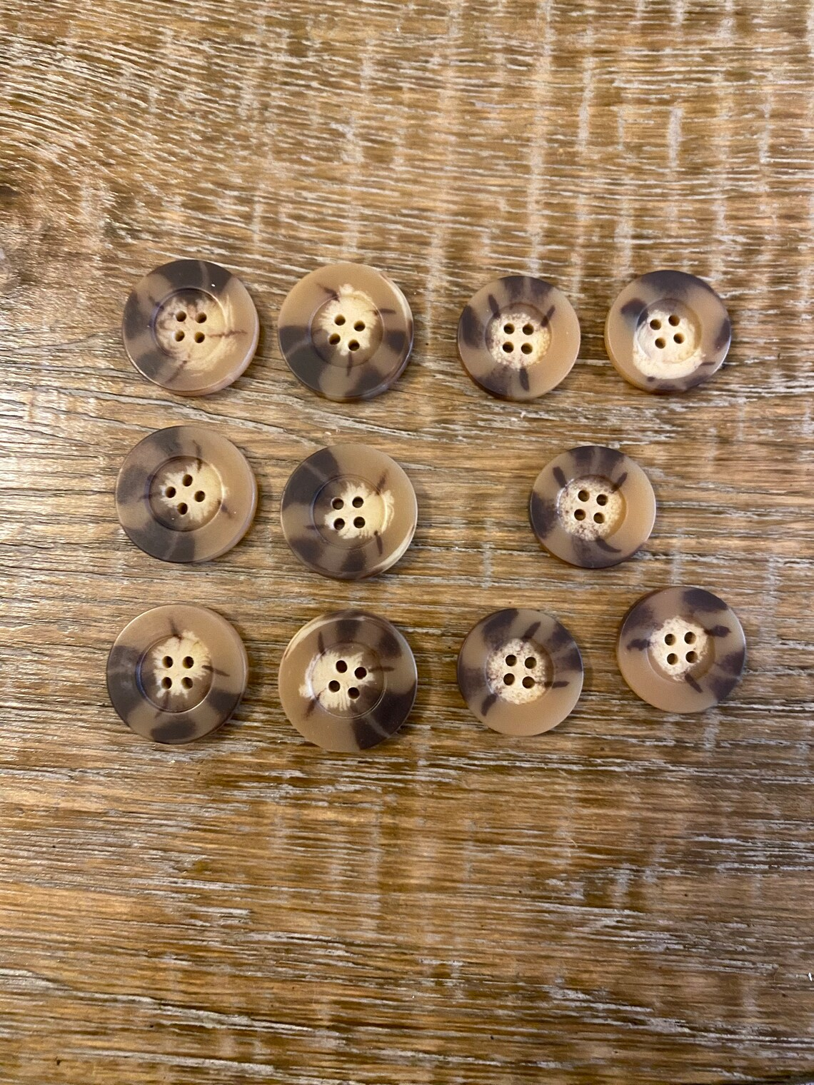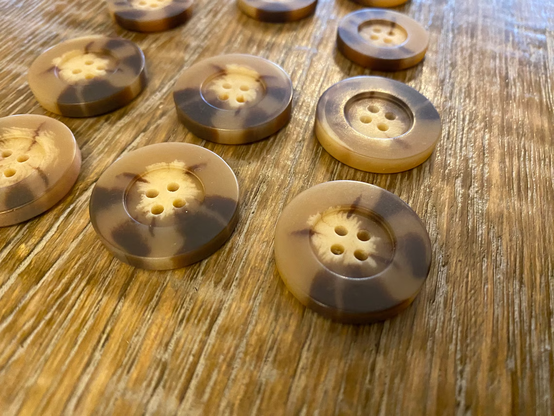 Mock horn buttons in a warm tone. Excellent quality 4 hole buttons.