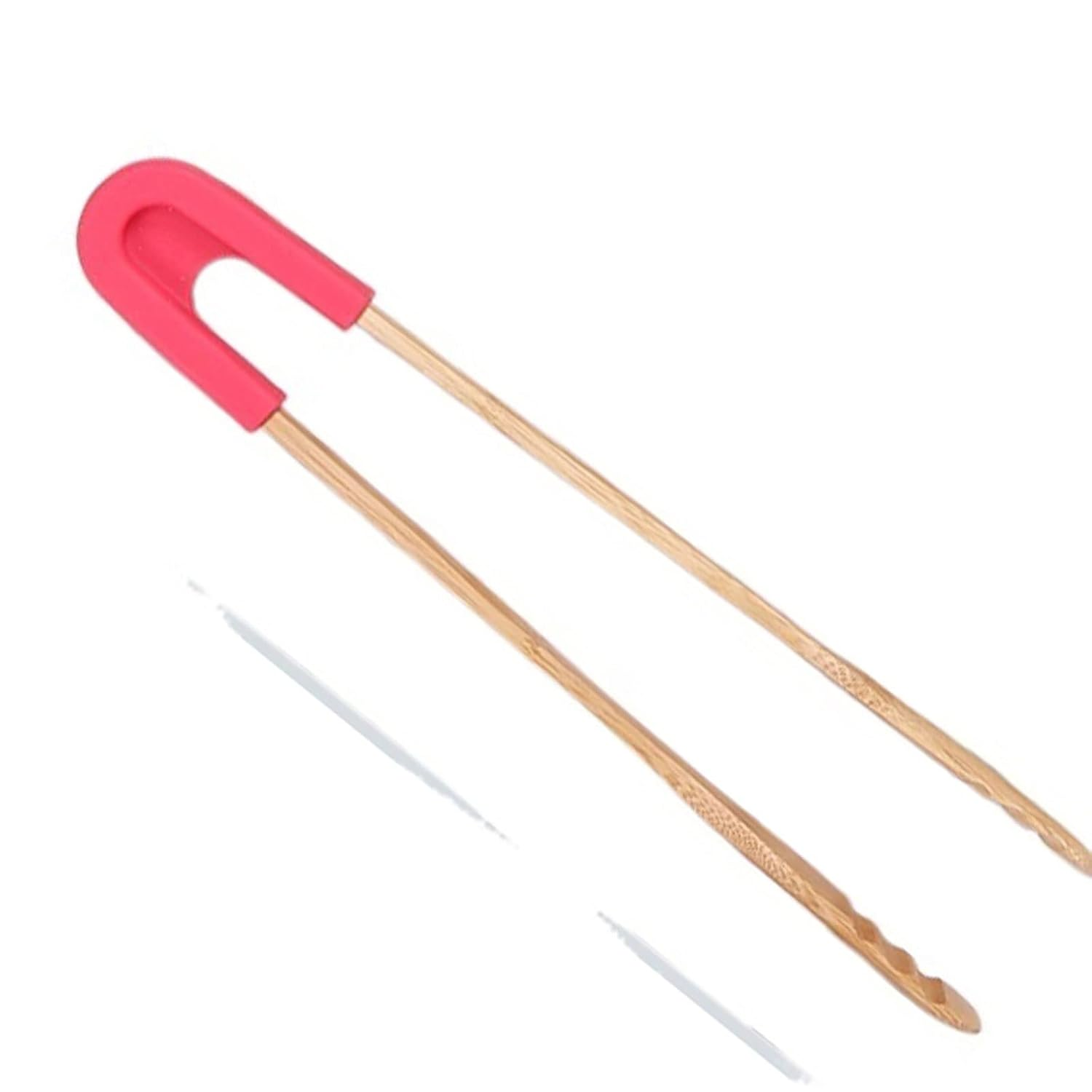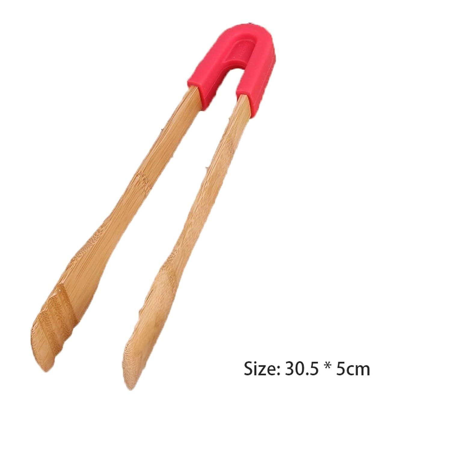 Ice Tong Baking Bamboo Food Toaster Tongs Wooden Salad Cake Snack Clip Grip Silicone Handle Bake Bread BBQ Tongs Clamp Cooking Utensils