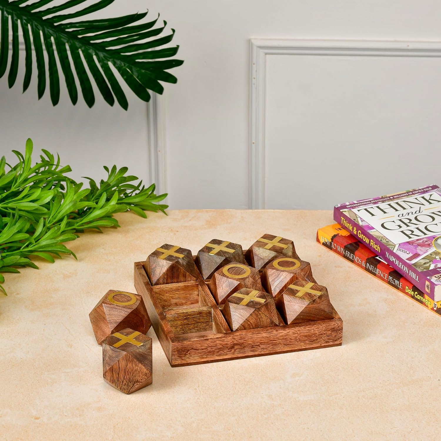 Luxury Wooden Tic Tac Toe Game Set – Handcrafted Mango Wood with Golden Inlay – Decorative Classic Board Game for Adults & Kids – Coffee Table Decor & Gift Item