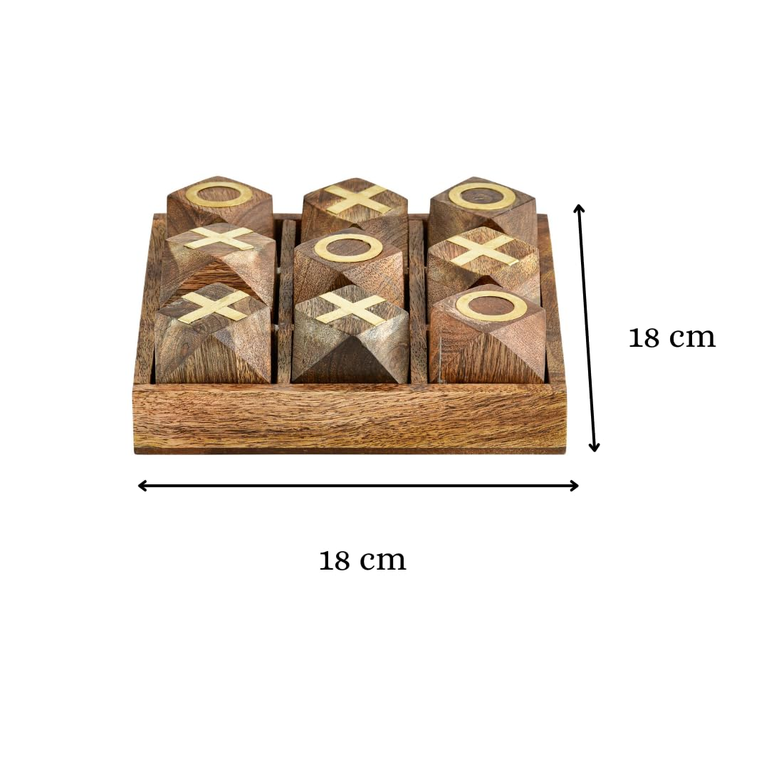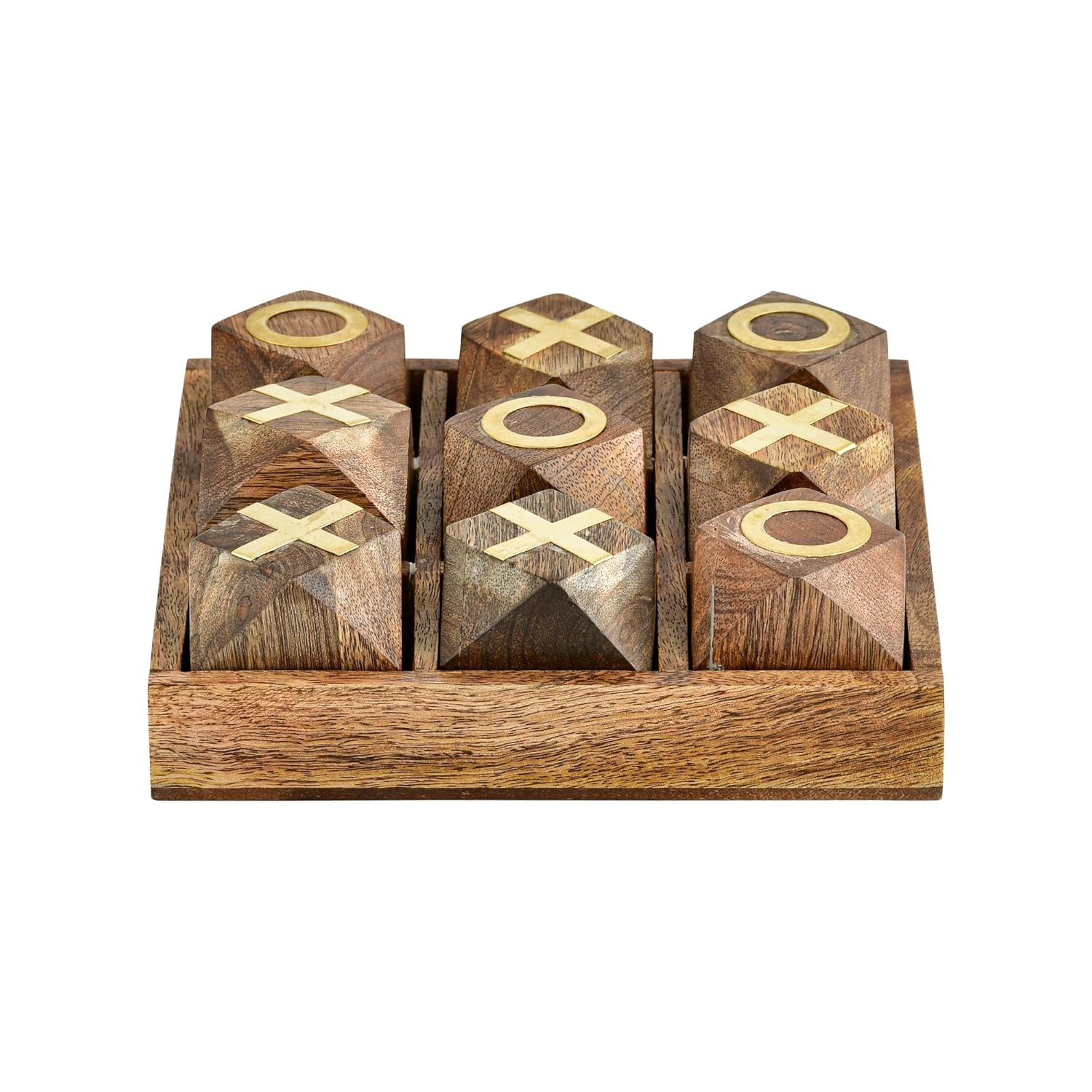 Add a touch of elegance and nostalgia to your living space with this handcrafted wooden Tic Tac Toe game set. Made from solid mango wood and accented with brass Xs and Os, this classic game gets a stylish upgrade. The beveled game pieces are easy to grip, and the board features a sturdy wooden grid that doubles as a storage base when not in use. This set isn’t just for play – it’s a beautiful home accent piece. Whether displayed on a coffee table or gifted to a loved one, this game set combines fun, function, and fine craftsmanship in one elegant package.