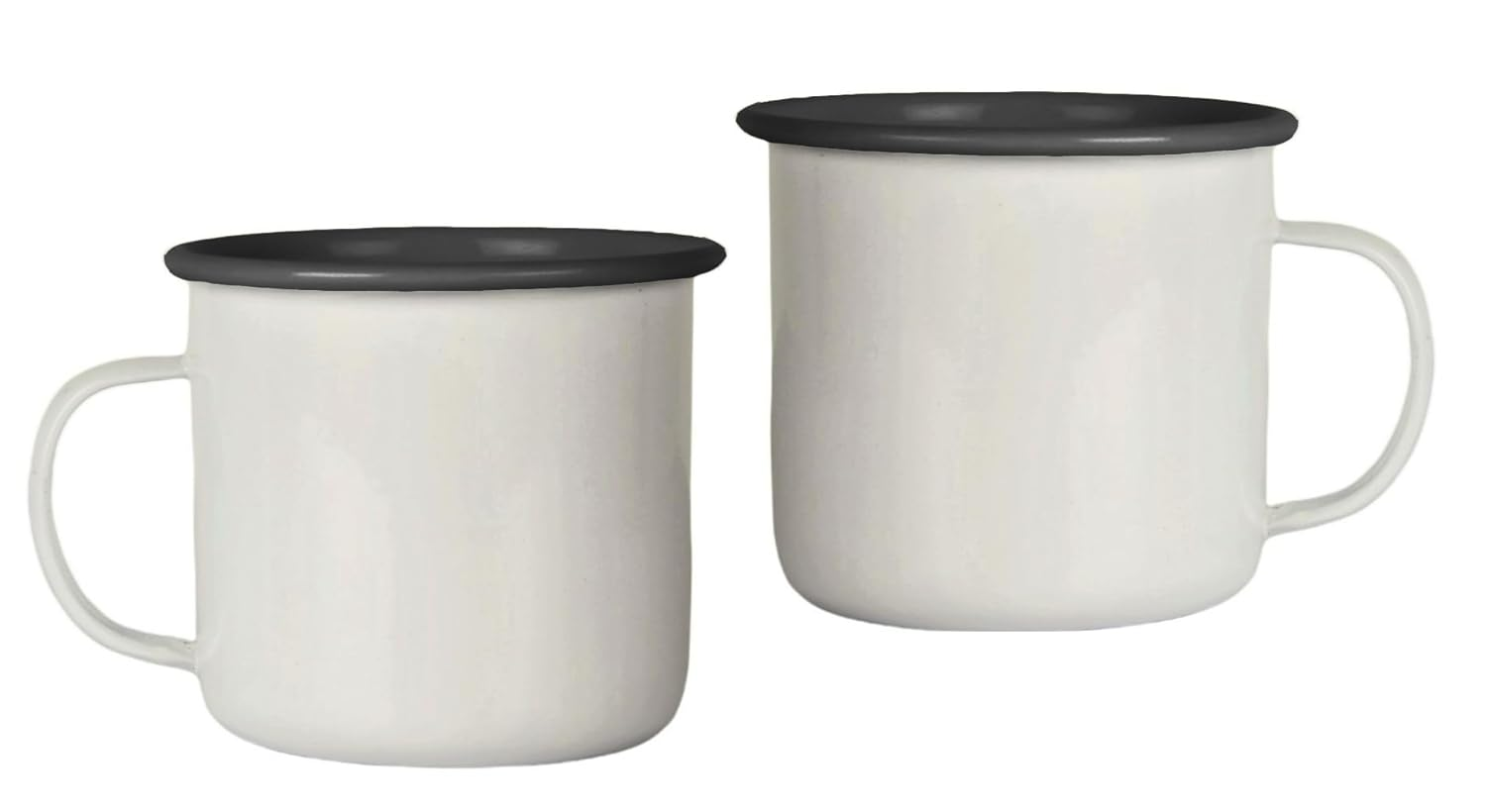 Military Mugs – White Enamel | Non-Insulated Metal | Pack of 2 Mugs | 375 ml