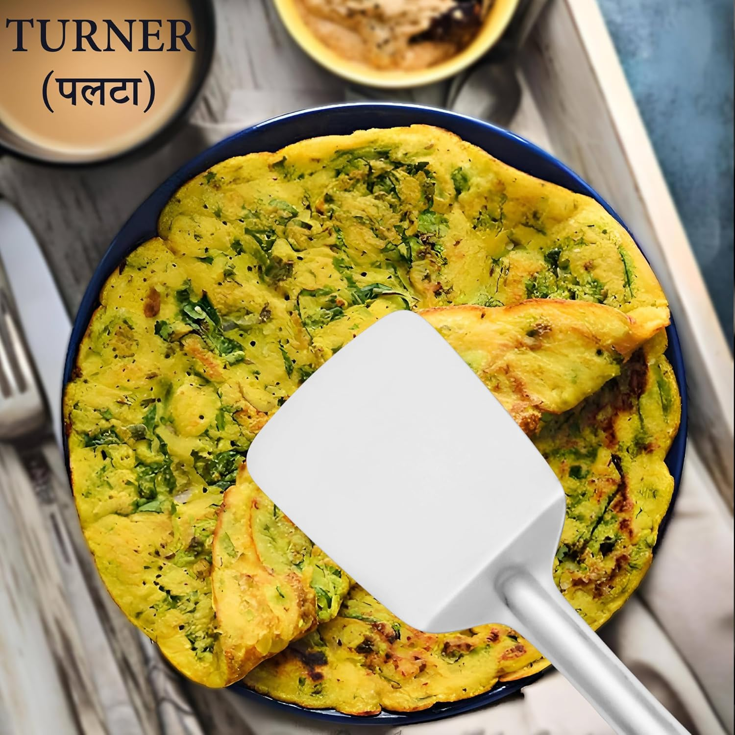 - PACKAGE INCLUDE-: We are offering 3 steel kitchen accessories items- 1 Ladle, 1 Skimmer, 1 Turner for all your cooking and serving needs.