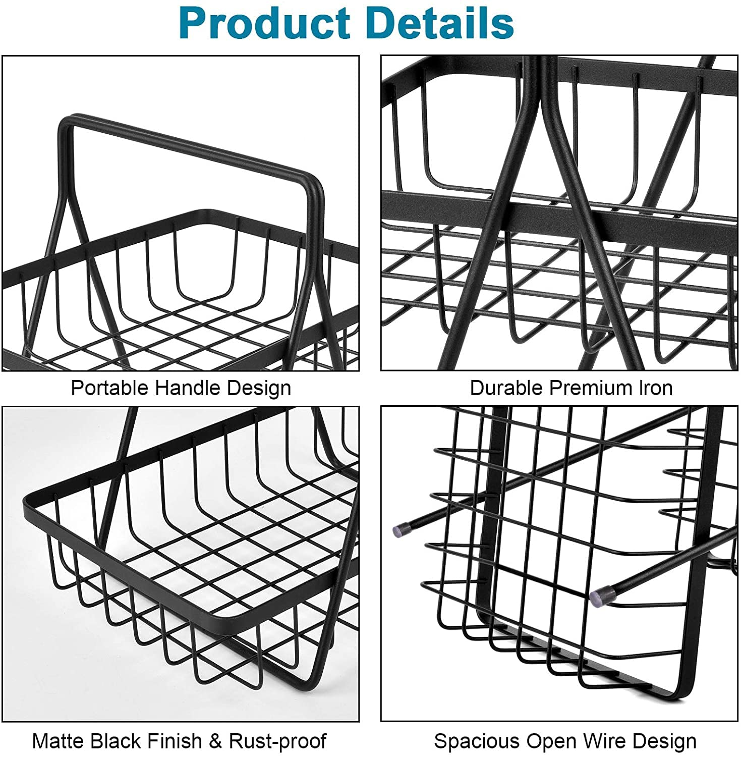 - 𝟮-𝗧𝗶𝗲𝗿 𝗖𝗼𝘂𝗻𝘁𝗲𝗿𝘁𝗼𝗽 𝗕𝗮𝘀𝗸𝗲𝘁: The Basket is Perfect For Holding Both Fruits And Vegetables, Keeping Your Space Organized And Doesn’t Take Up Too Much Countertop Space. The Open Wire Basket Lets Air Circulate More Freely, Keeping Fruits And Vegetables To Breath And Stay Fresh.