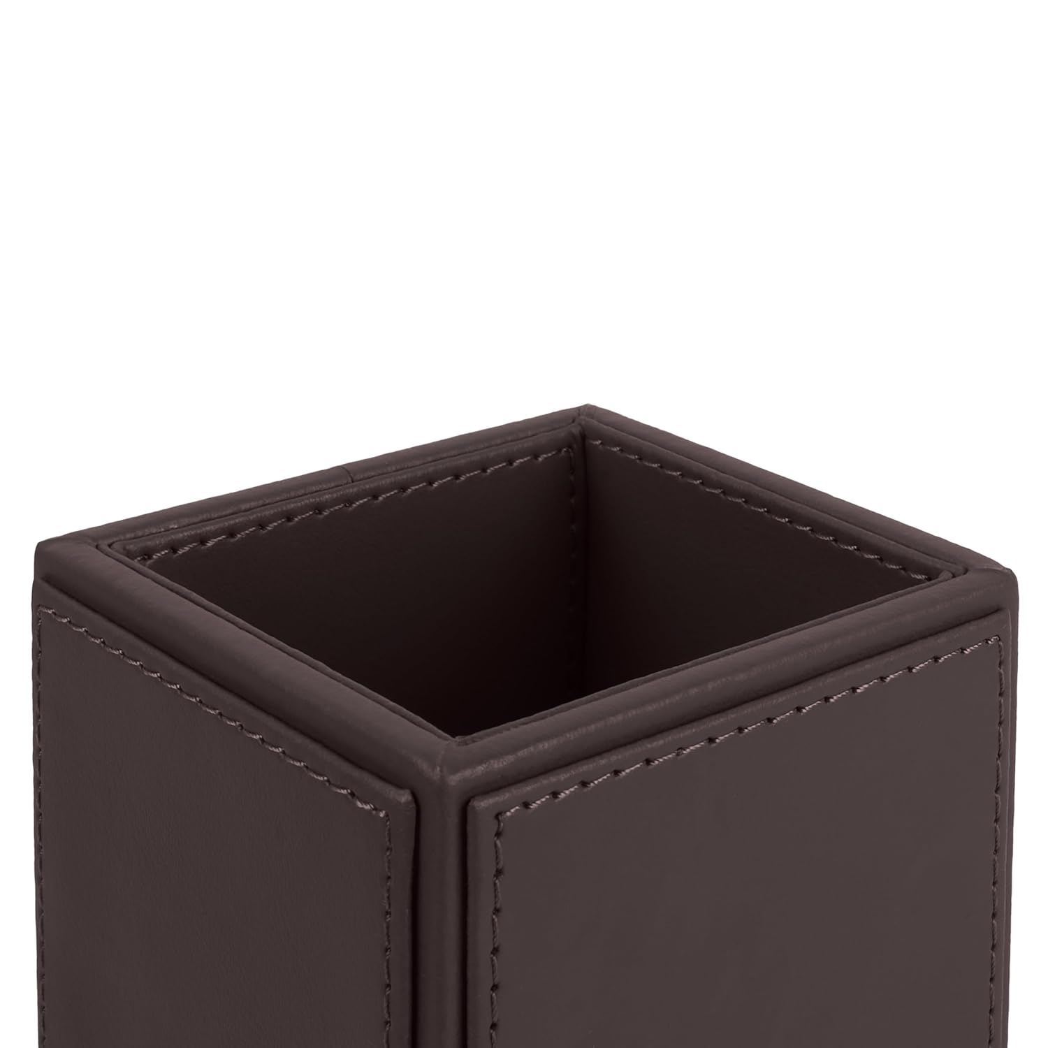 • Package Contains – 1 Pc Pen Holder | Color – Brown | Material – MDF & Faux Leather | Dimensions – 10.8 x 8.4 x 8.4 cm