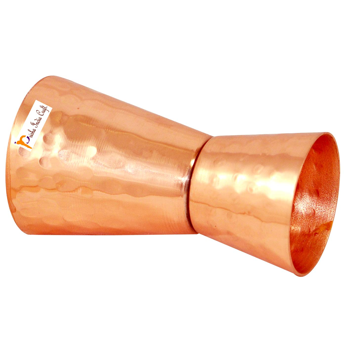 - FEATURES: Prisha India Craft hammered design pure copper jigger, set of 2, color: brown, material: copper, each jigger size: weight: aprox 50 gram, length: 2.00″ inch, width: 2.00″ inch, height: 3.50 inch, on purchase you will get: 2 Copper Jigger