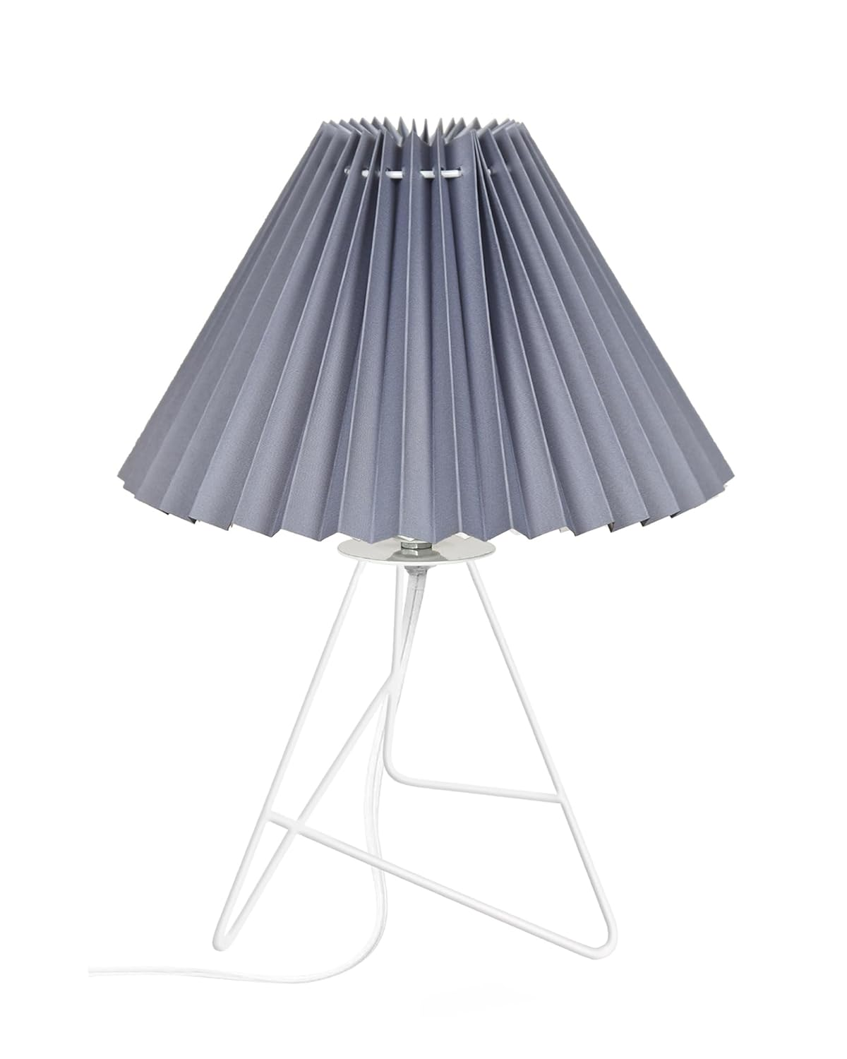 Illuminate your space with this elegant and minimalist table lamp. Crafted with a sleek Grey pleated fabric shade and a sturdy wire frame base, it exudes a timeless charm that complements any decor style. The lamp’s compact design makes it a versatile choice for bedside tables, desks, or living room accents. With its soft, diffused light, it creates a warm and inviting ambiance perfect for reading, working, or simply relaxing. Elevate your interior with this chic and functional lighting solution that combines style and functionality seamlessly.