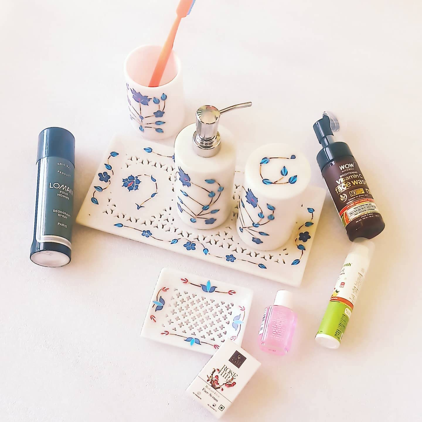 • Easy to Clean: The smooth and polished marble surface makes the bathroom set easy to care for and maintain. It can be cleaned with a damp cloth and mild detergent, ensuring its new look for a long time.