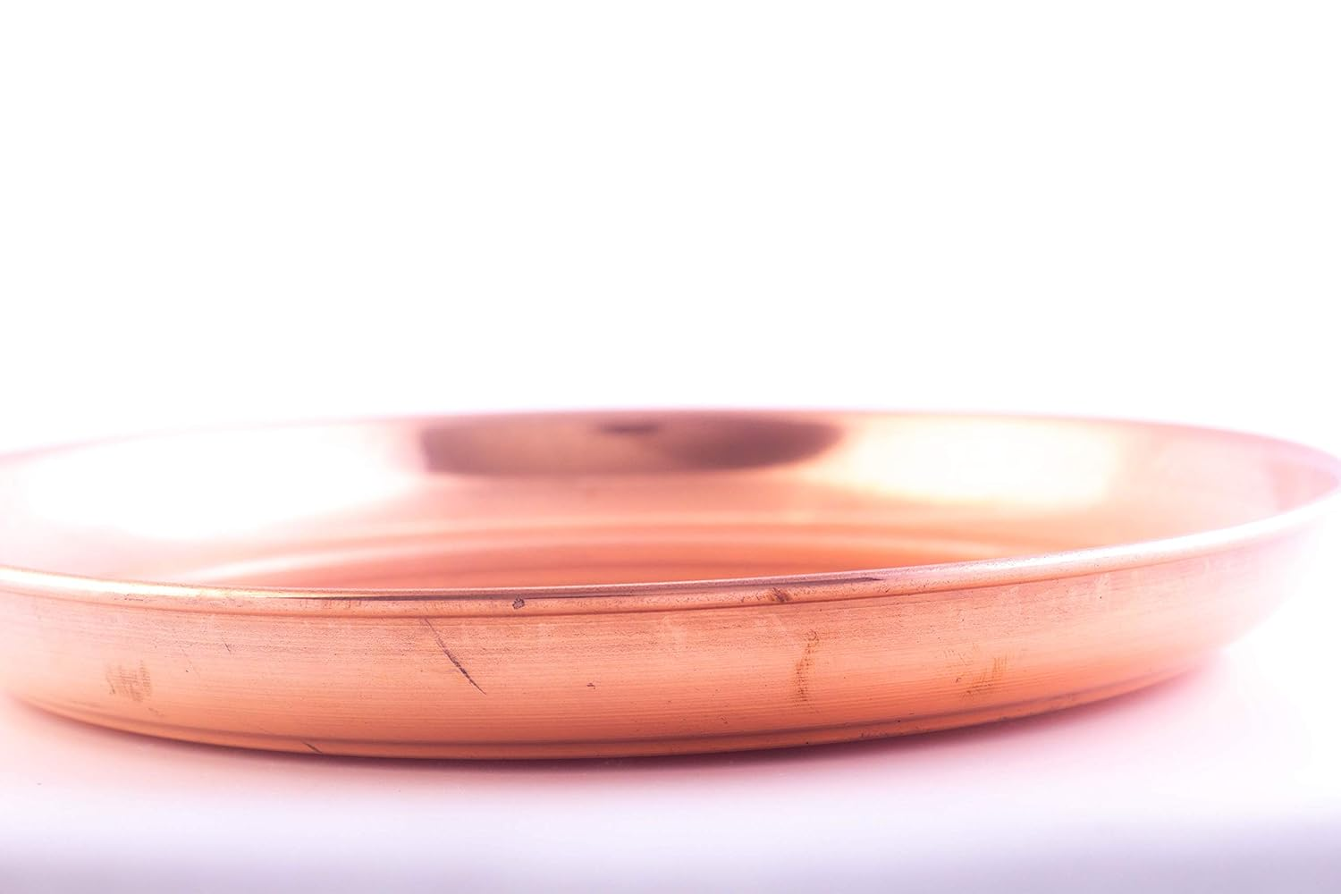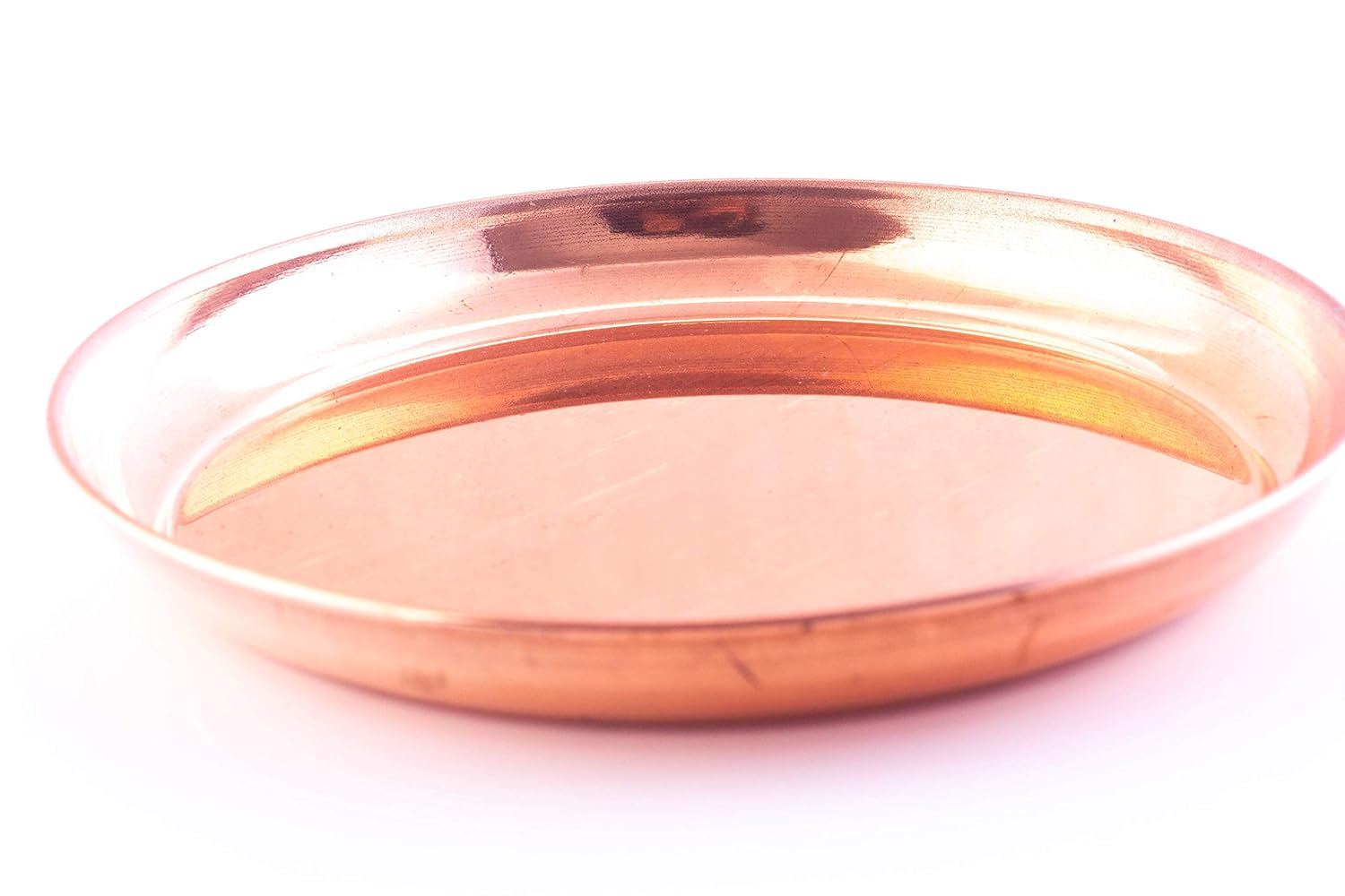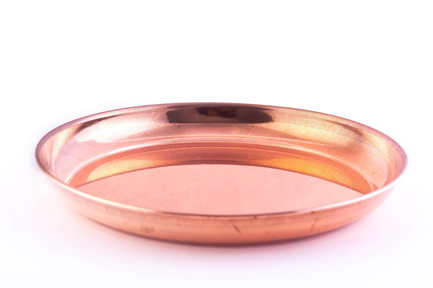 ROLIMOLI Pure Copper Thali Tray Plate, Serving Tea Coffee, Home D?cor, Tableware, 9 inch