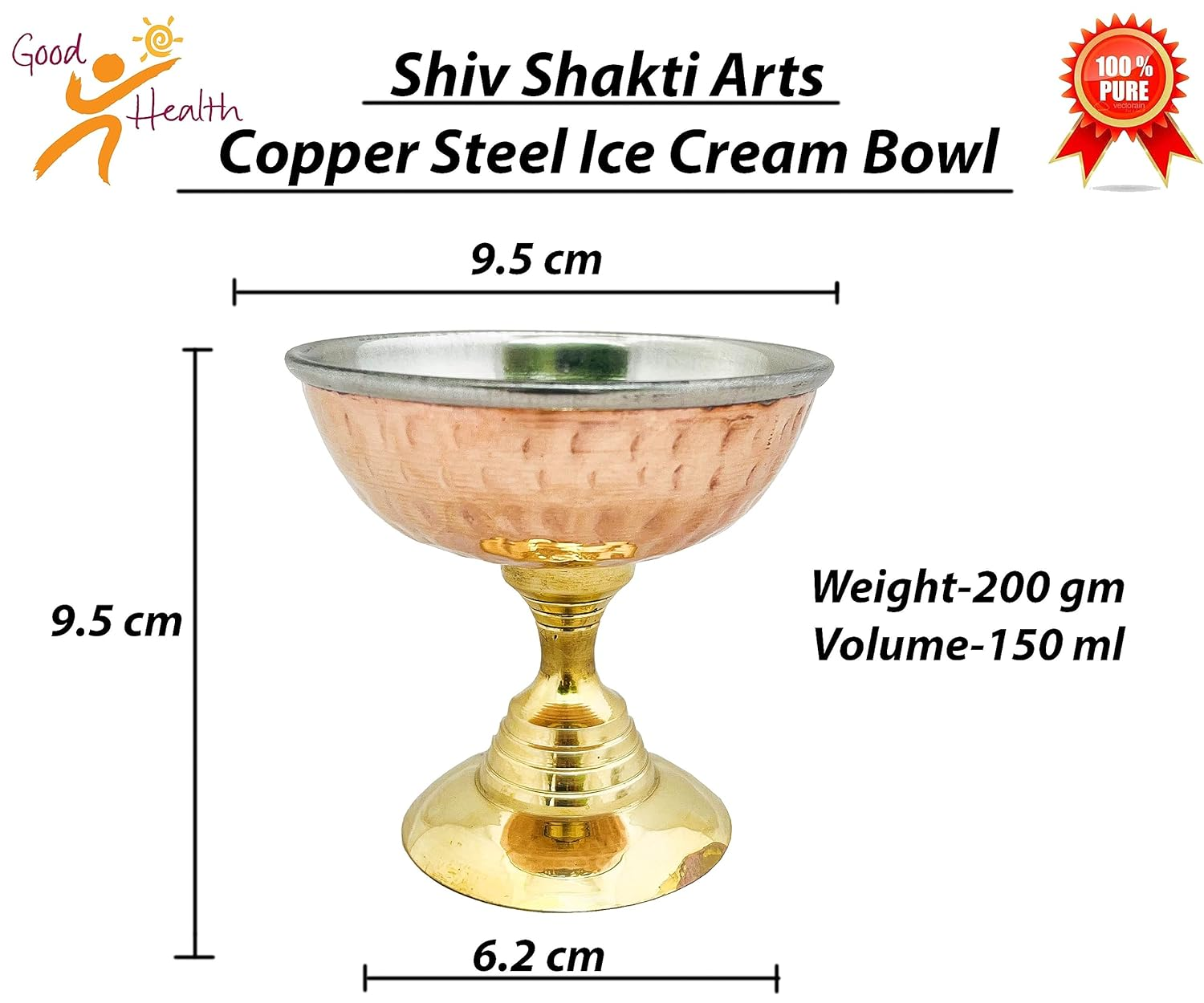 SHIV SHAKTI ARTS Steel Copper Bowl for Ice Cream Dessert with Brass Base for Serving Purpose at Home and Hotels Volume-150 ml (Pack of 1)