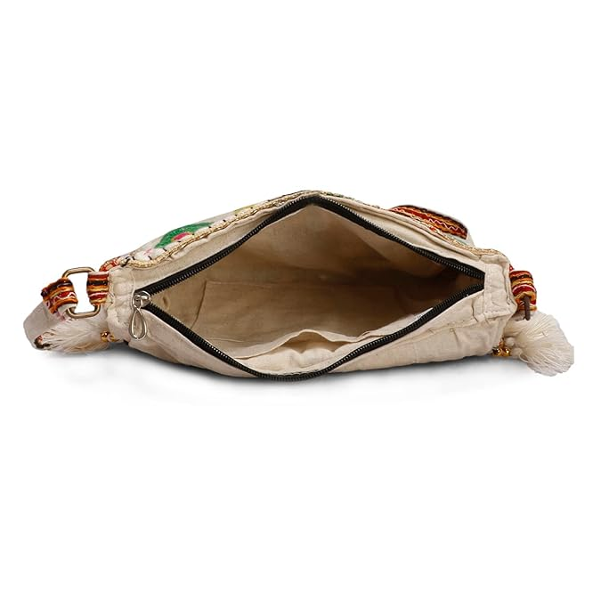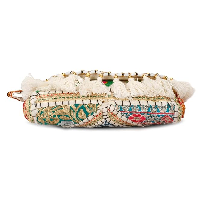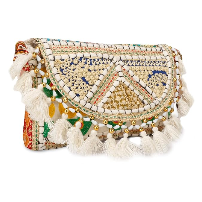 Shristi bag collection Handmade Cotton Ethnic Rajasthani Embroidered Bags for Women Sling Clutch with Handle Purses for Ladies Gir (Design8)