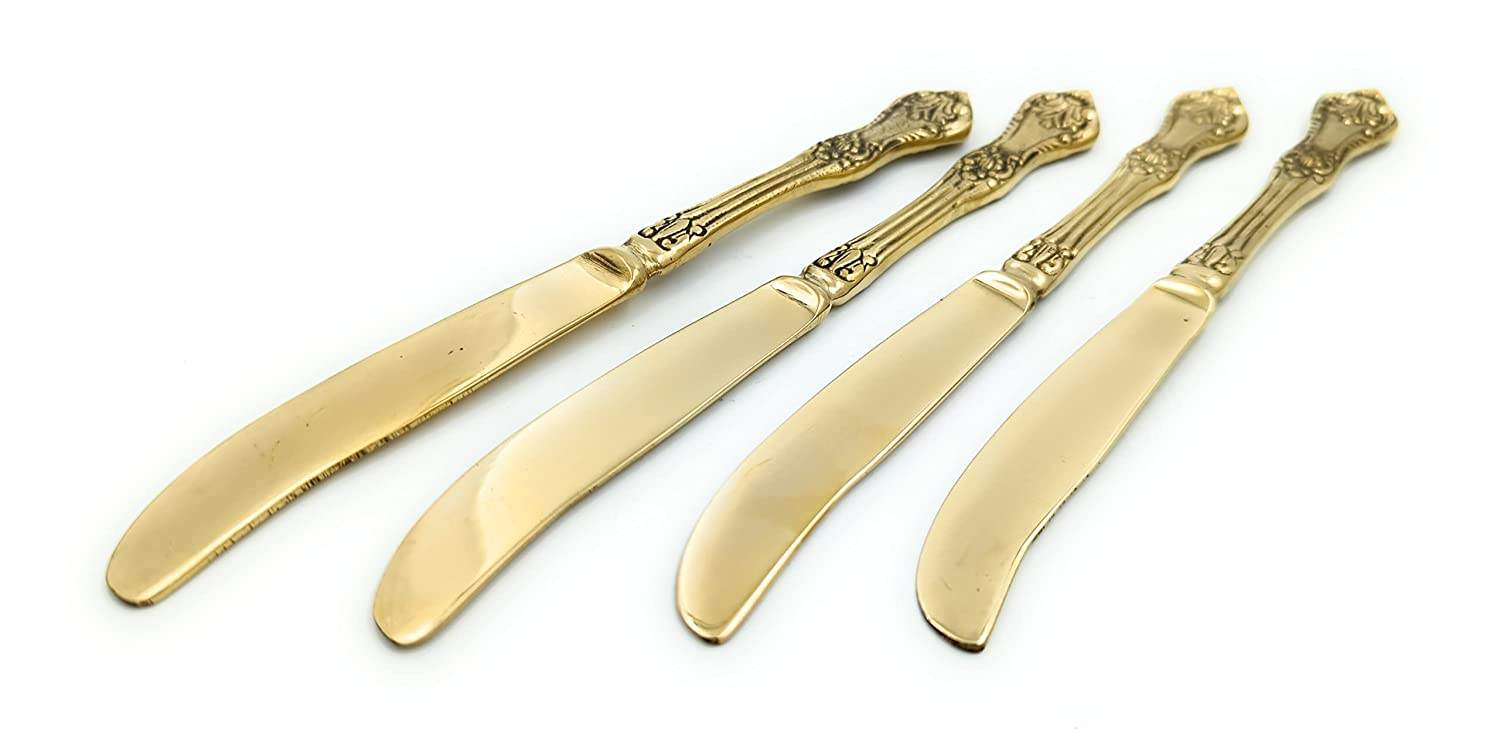 Add a touch of luxury to your dining experience with this elegant Brass Butter Knife, handcrafted by skilled artisans. Made from high-quality solid brass, it features a smooth, polished finish and a refined shape designed for effortlessly spreading butter, cheese, or spreads. Perfect for both everyday use and special occasions, this butter knife blends functionality with timeless beauty. Its warm golden tone adds sophistication to any table setting, making it a stylish addition to your cutlery collection.