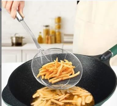Upgrade your kitchen with this premium 14cm,16cm,18cm Stainless Steel Deep Fry Strainer Ladle – the perfect utensil for straining fried foods like puri, pakora, fries, samosas, and more. Crafted with high-grade stainless steel, this oil skimmer is built for durability and daily use. The 14-inch ,16-inch, 18-inch total length ensures safe handling when working with hot oil, while the 14cm,16cm,18cm wire mesh strainer head efficiently drains excess oil or water. Whether you’re deep frying snacks or blanching vegetables, this tool is a must-have for every home chef. Ideal for Indian kitchens and professional use, this long-handle oil skimmer provides maximum safety, functionality, and hygiene. Key Features: Premium Stainless Steel Build – Rust-proof, durable & food-safe. 14 cm Mesh Head – Perfect for puris, pakoras, fries, and snacks. 14-inch Total Length – Long handle keeps hands safe from hot oil. Wire Mesh Design – Ensures quick draining of oil or water. Easy to Clean – Dishwasher safe & low maintenance. Multipurpose Use – Suitable for frying, straining, skimming, and blanching. Ergonomic Handle – Comfortable grip with hanging loop for storage. stainless steel oil skimmer deep fry strainer spoon puri frying spoon pakora oil strainer wire mesh skimmer ladle 14 cm frying skimmer long handle strainer spoon kitchen oil drain tool frying ladle with handle stainless steel fry spoon strainer for frying puri skimmer spoon with wire mesh cooking oil strainer tool