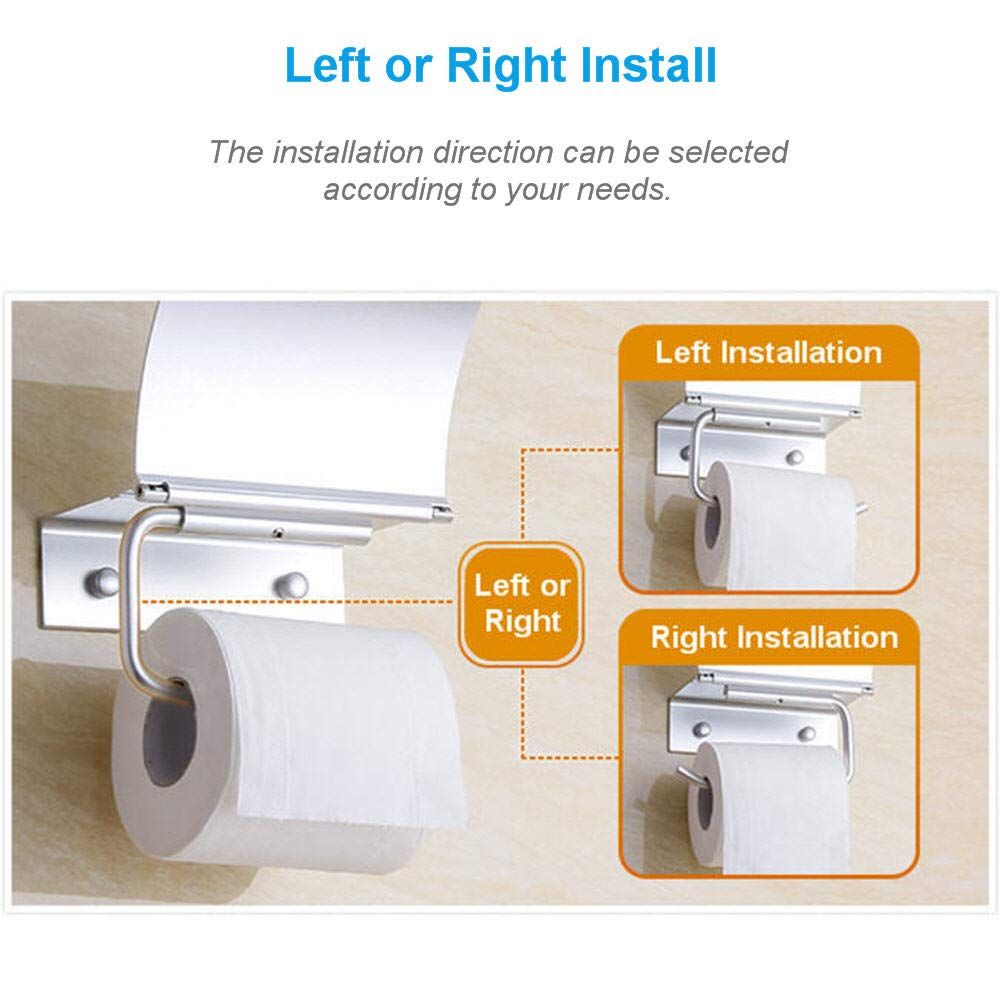 - 【Phone Shelf】There is mobile phone storage shelf above toilet paper holder. When you are in the bathroom,you can put small items such as mobile phones, wallets, keys or wet wipes boxes on the shelf. With this TP holder, when you are in the toilet, you won’t be embarrassed cause there is no place for your phone.