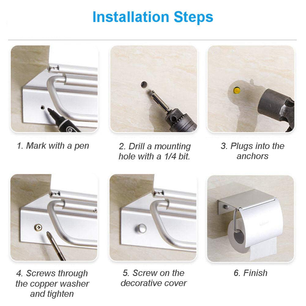 - 【Wall Mount】You need to drill holes in the wall (with 1/4” bit), and permanently install the toilet paper holder on the wall. This fix way will keep the toilet paper holder on the wall forever, ensure a firm installation and never worry that the TP holder will fall off.