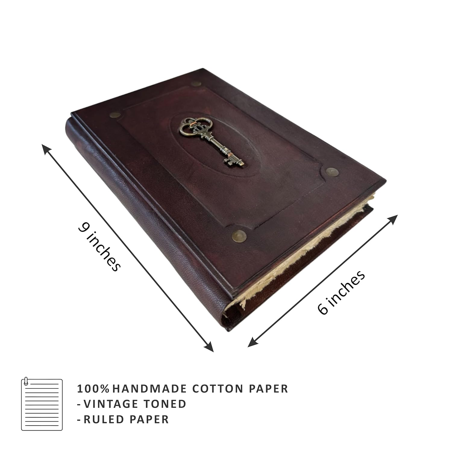 Vintage Hardbound Leather Journal – Ruled 100% Cotton Vintage Handmade Paper, Hardbound, 6×9 inches (Brown)