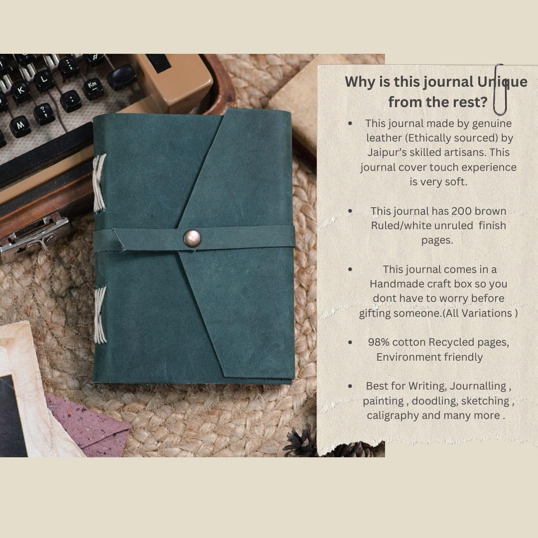 - ✔ Beautiful & Aesthetic: Handmade leather book journal – use it as scrapbook or sketch book to draw, stick travel photos to make collage, practice Calligraphy using fountain pen, paint your dream using a paint brush and do not worry as we use no-bleed through thick craft pages. Best hand-crafted gift for an Art lover. Carry in style and get compliments wherever you may go, Compliments Guaranteed
