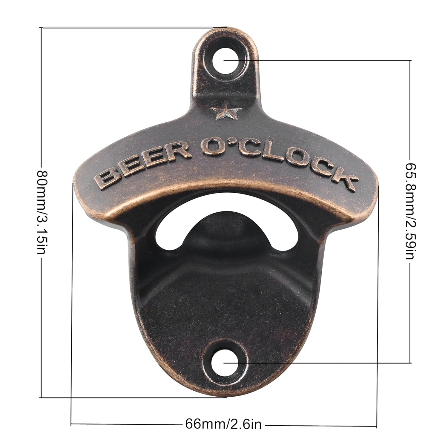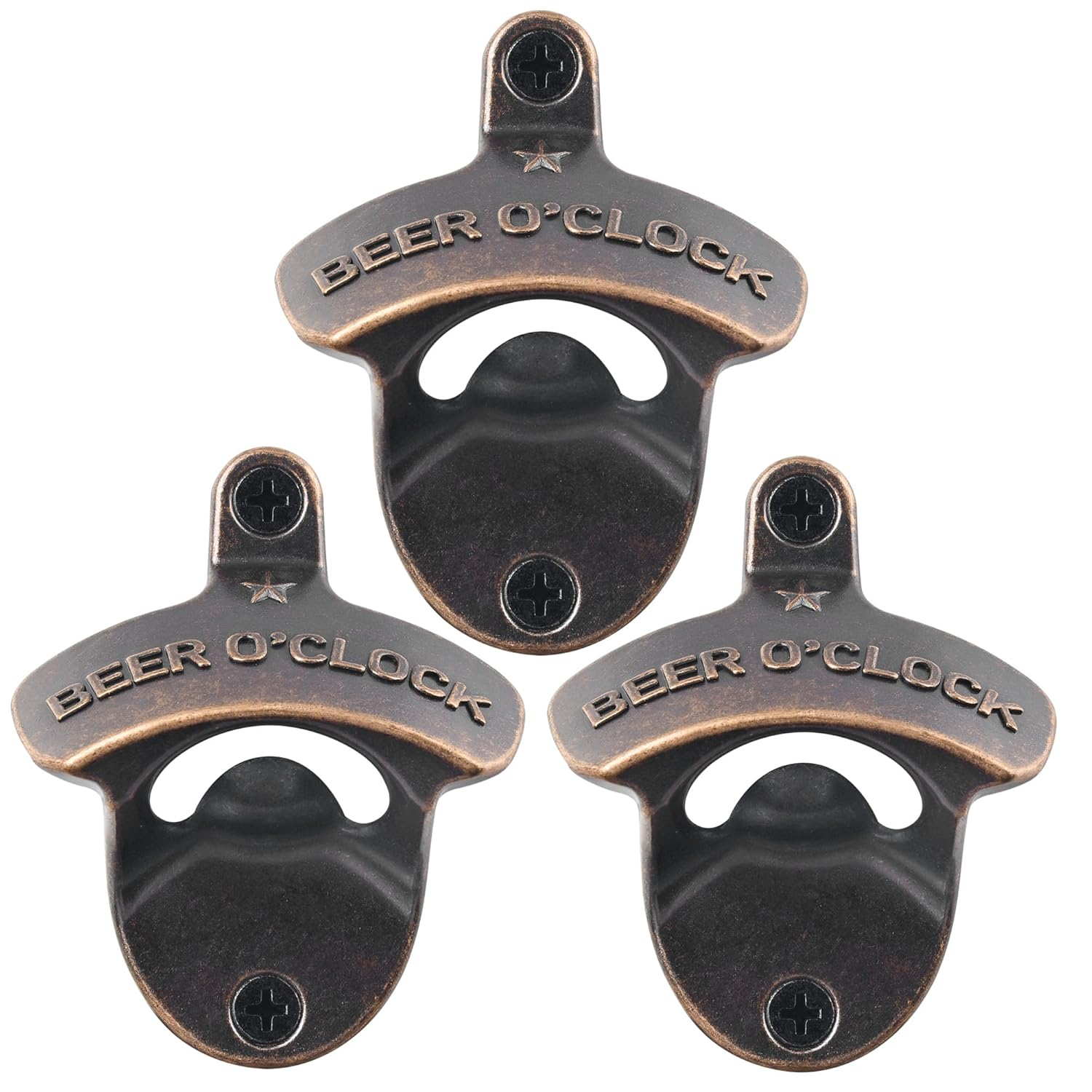 Vintage Wall Mount Bottle Opener BEER-O-CLOCK Screw on Bottle Cap Opener Antique Copper (Pack of 3)