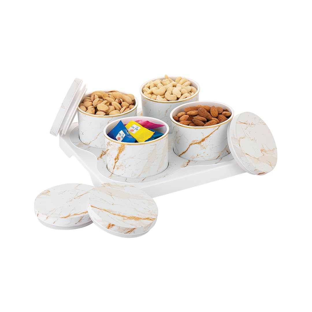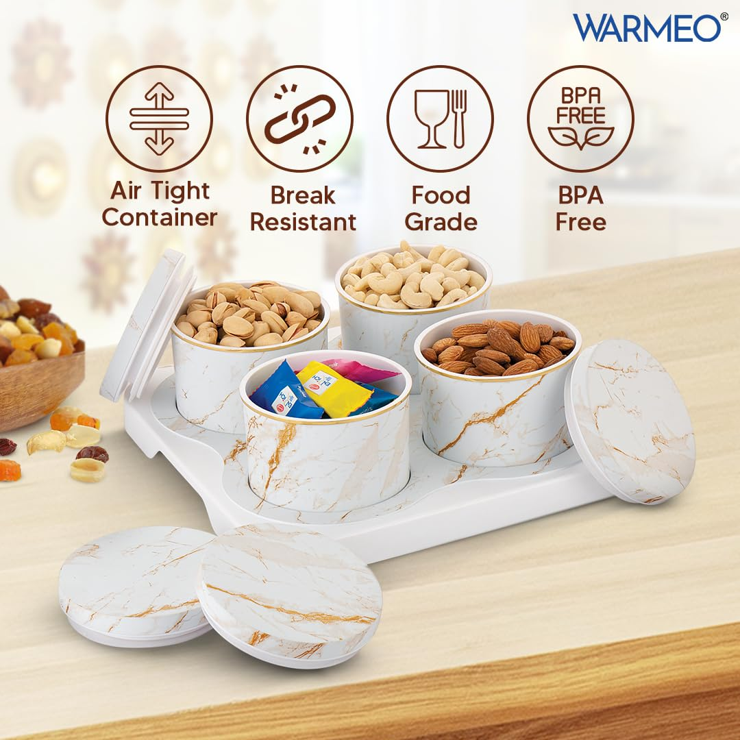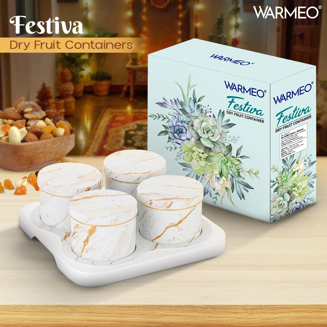 WARMEO FESTIVA Airtight Dry Fruit Container Tray SET of 4pcs (450ml each),Dry Food Storage Box I Premium Gifting Set I Multi-Purpose Box l Serving Sweets, Chocolates, Candy- Italian White