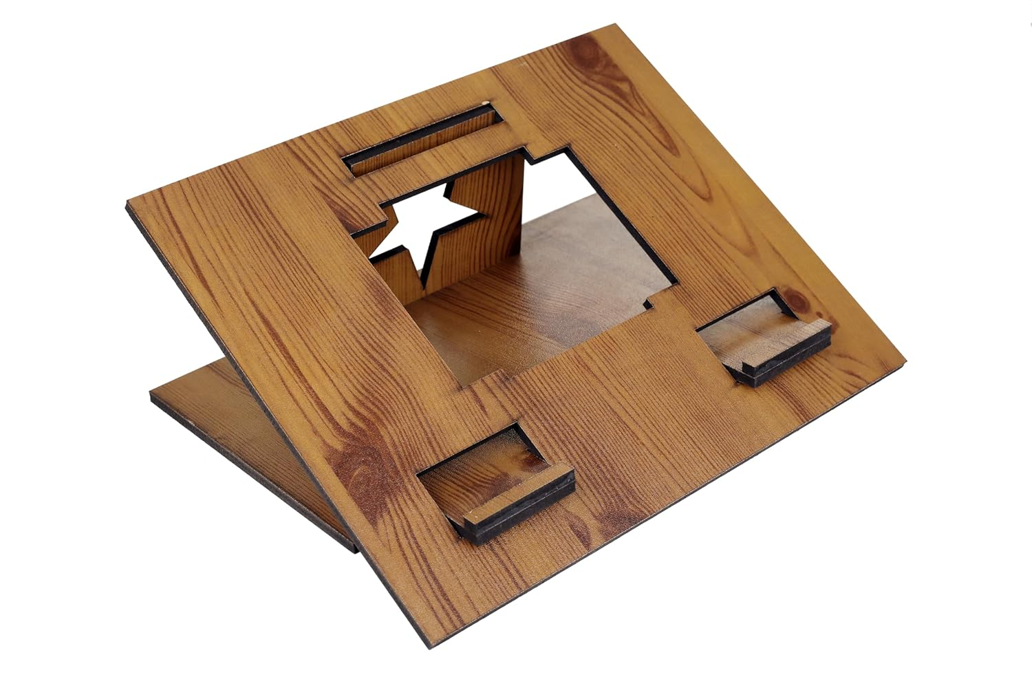 Wooden Laptop Stand, Portable Foldable Design, Height Adjustable, Star Pattern (Pine)