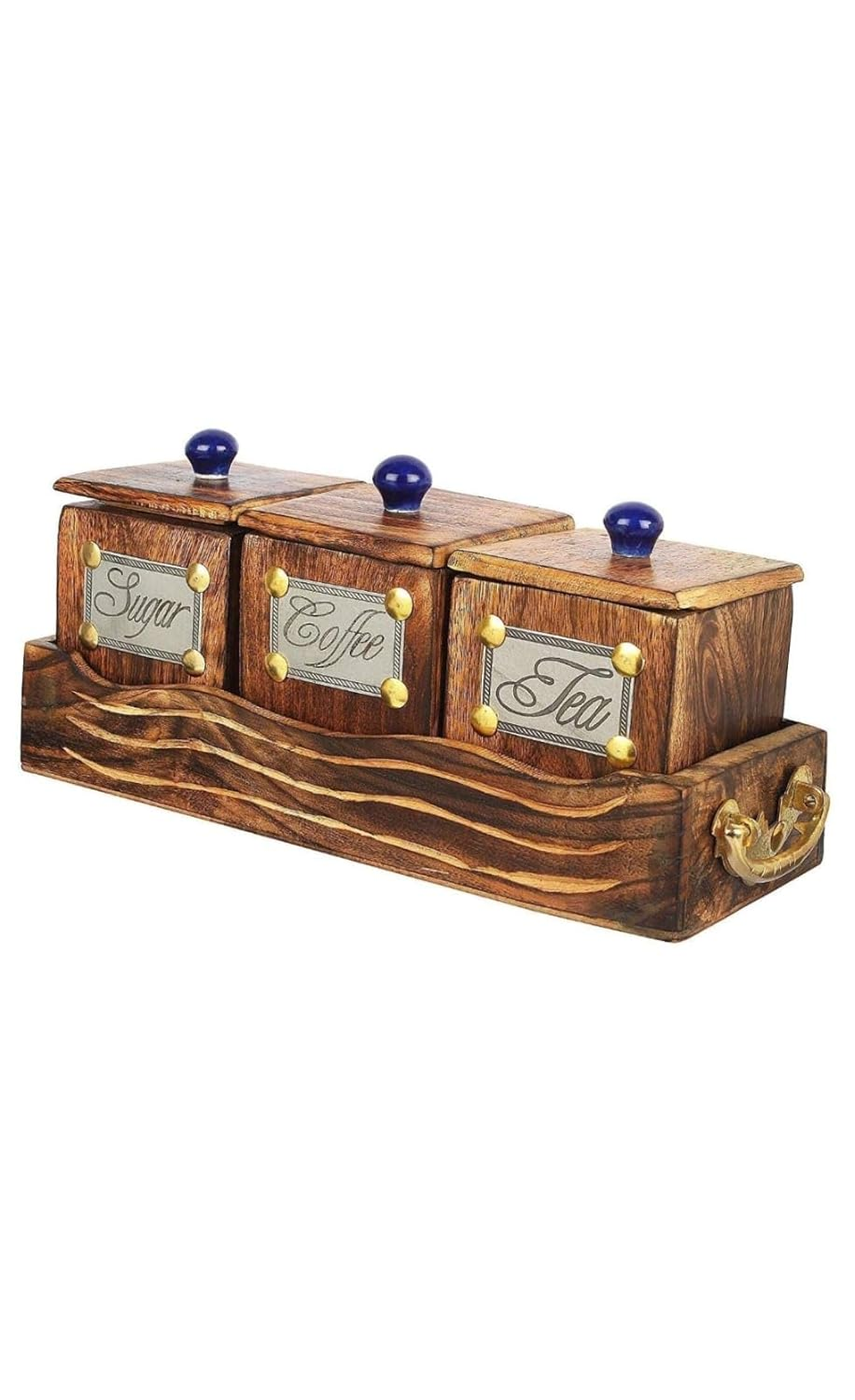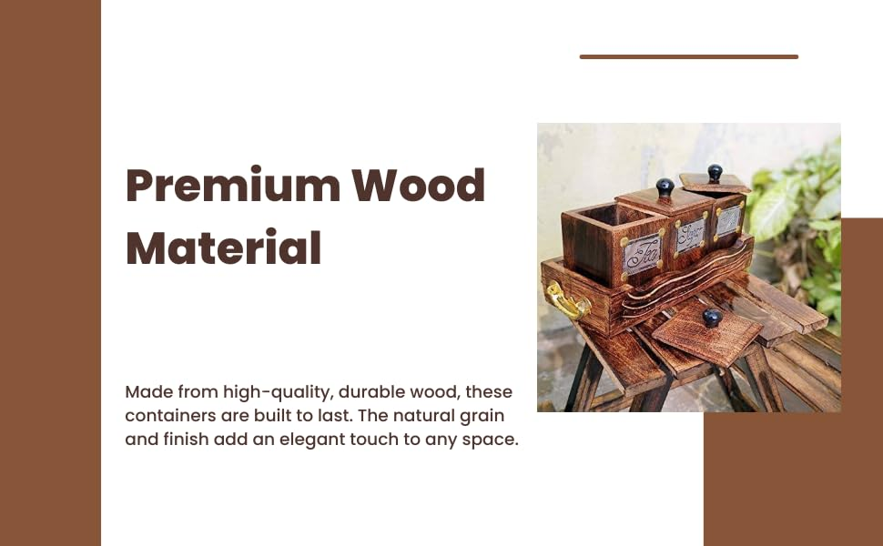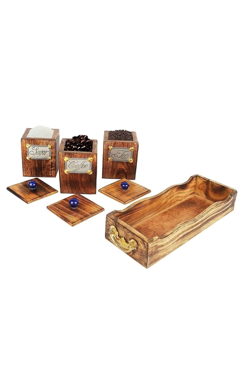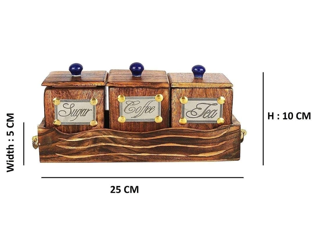Wooden Storage Container Set One Set with 3 Jars with Lids,One Tray,(Brown) 3 Container with Lid, Stand for Coffee, Tea, Sugar Material -Wooden Boxes for Kitchen(Brown) Mango Wood