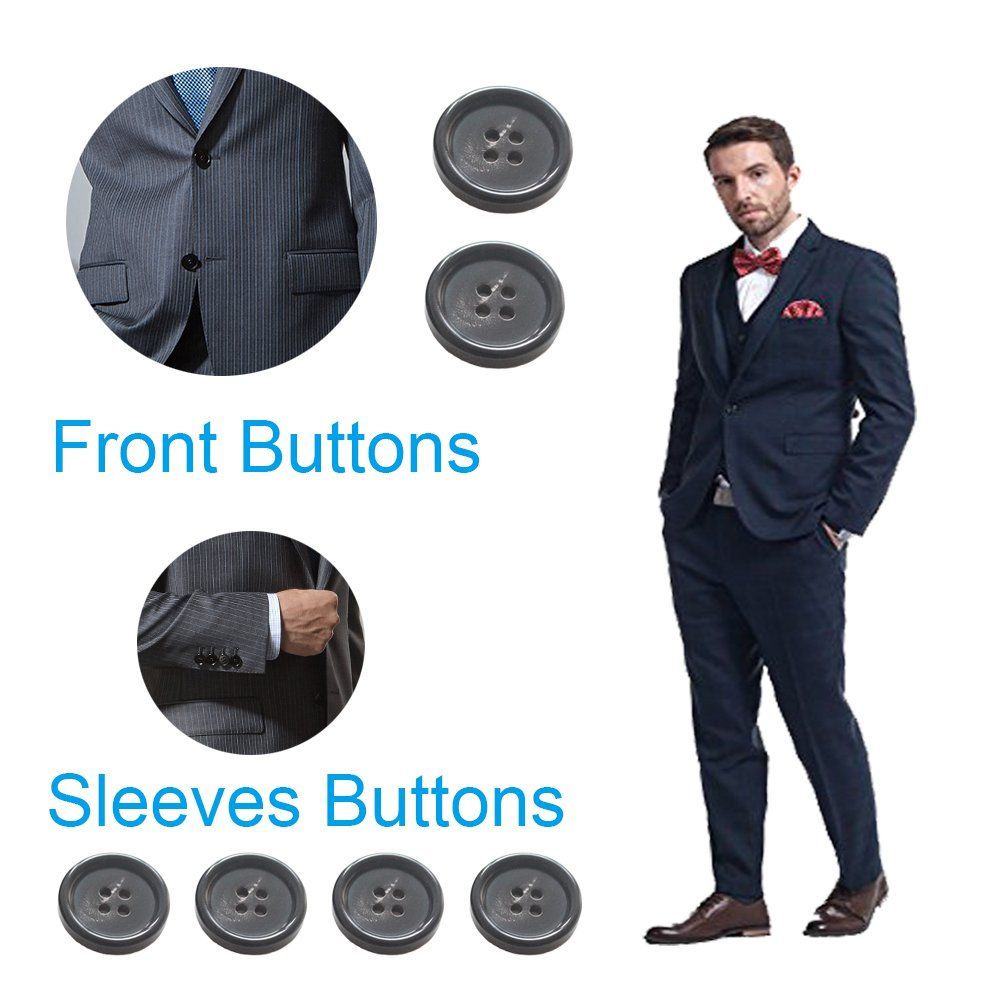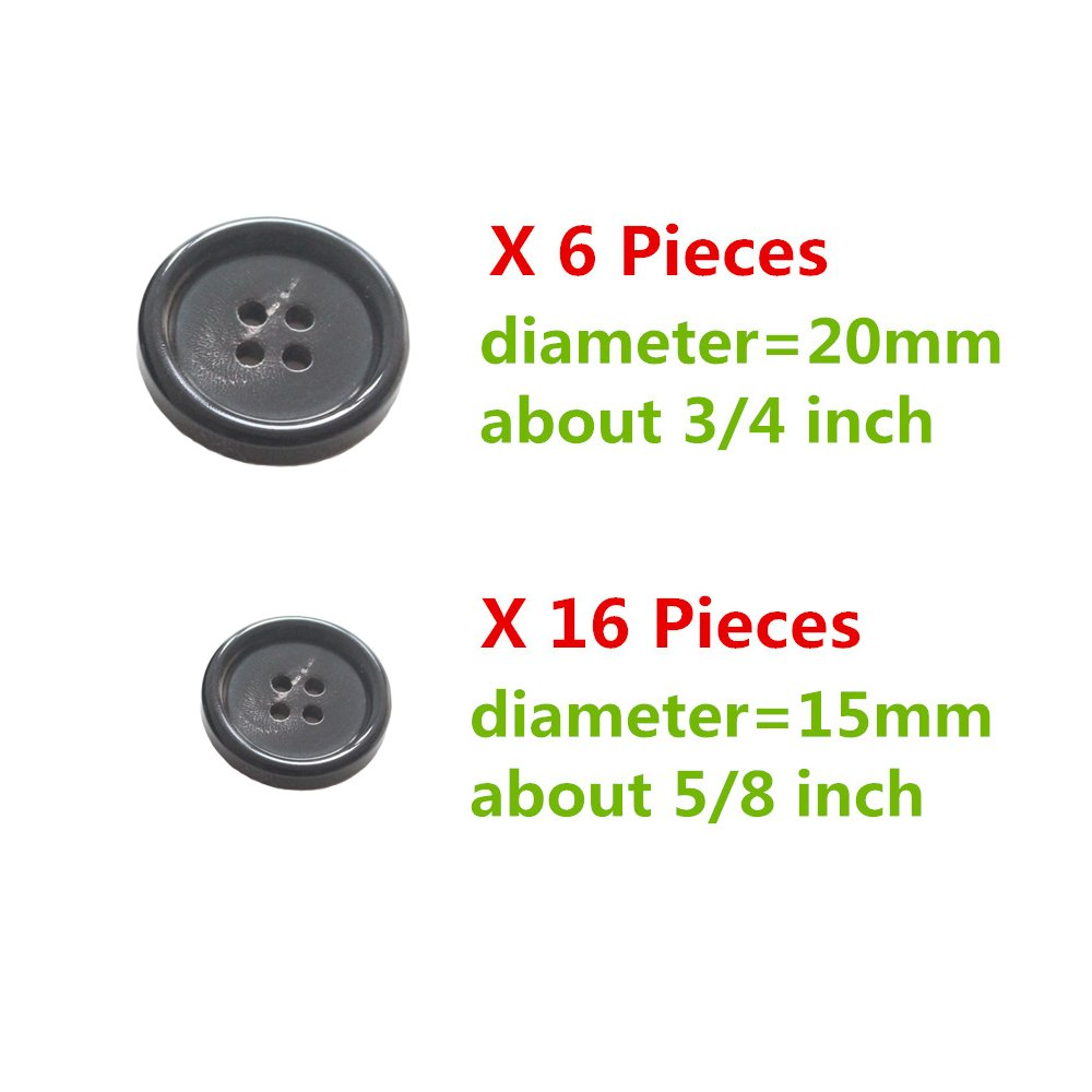 YaHoGa 22 Pieces Real Horn Buttons Set for Blazers Suits Coats 15MM 20MM Natural Black Buffalo Horn Blazer Buttons Suit Buttons for Men (Black)